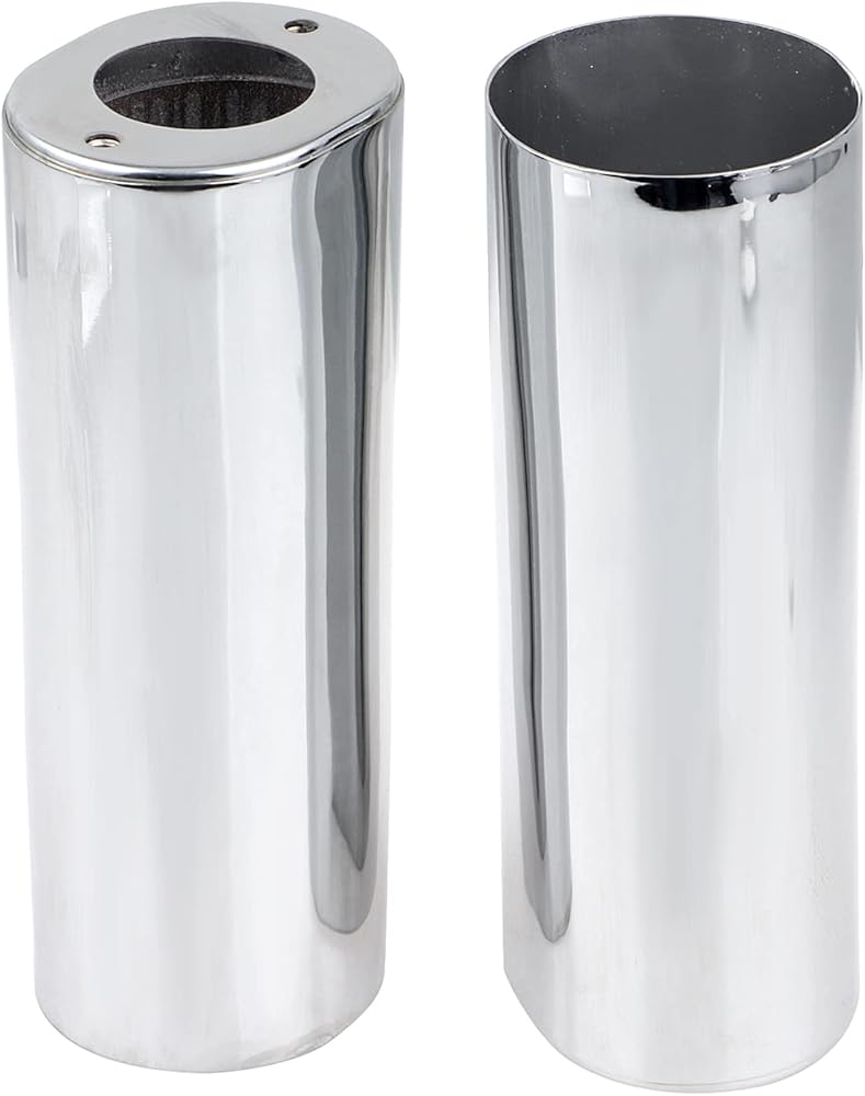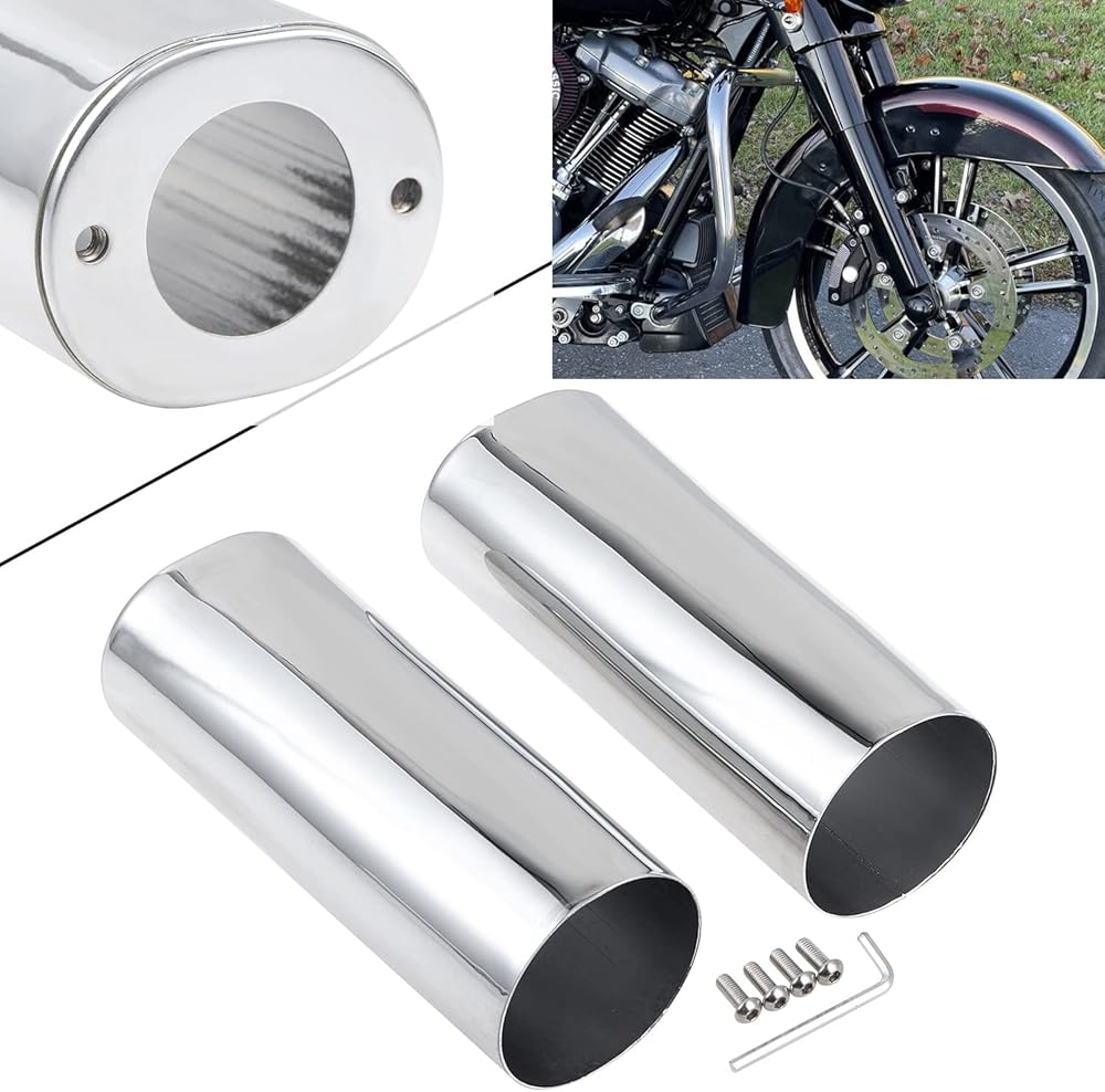 ▶ Feature: Smooth 2" Over Stock Length OEM Replacement. NOTE: Always check slider covers for proper clearance. Bottom area of slider covers may need to be formed slightly to clear lower legs and fender.