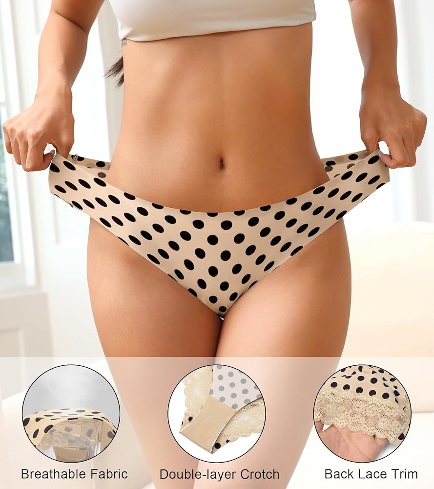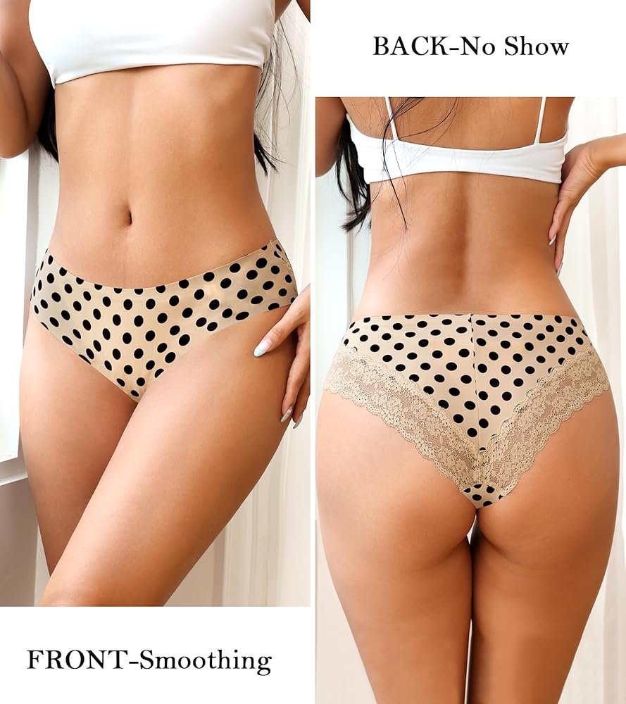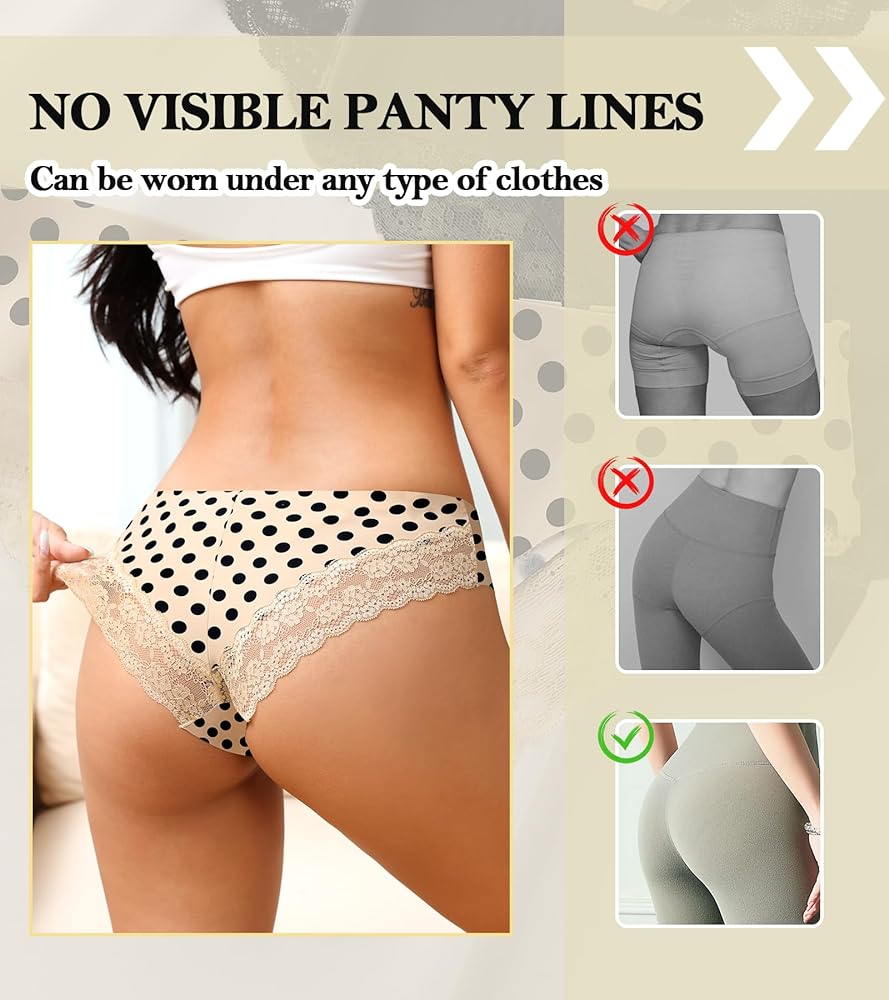 INVISIBLE UNDER CLOTHES - Women no show underwear with charming lace back gives a casual and sweet aesthetic, with no visible panty line, perfect with pants, jeans, and skirts. Back lace fabric adds sexiness and charm, ideal for special occasions, romantic nights, and intimate moments
