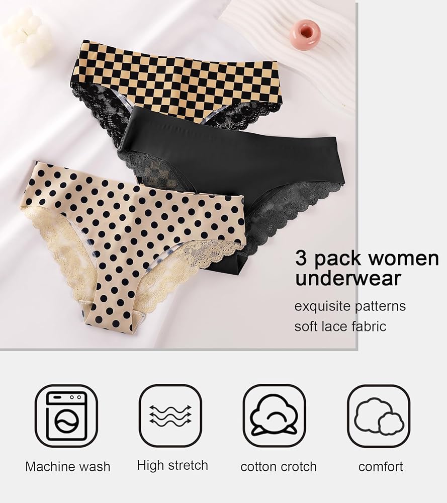 PACKAGE CONTENTS - 3 Pieces of lace underwear for women. Please let us know if you receive a defective/inappropriate size/problematic item, and we will refund or replace the item for you. We would like to know your opinion about all the details of Women's Lace Panties so that we can provide products and services accordingly
