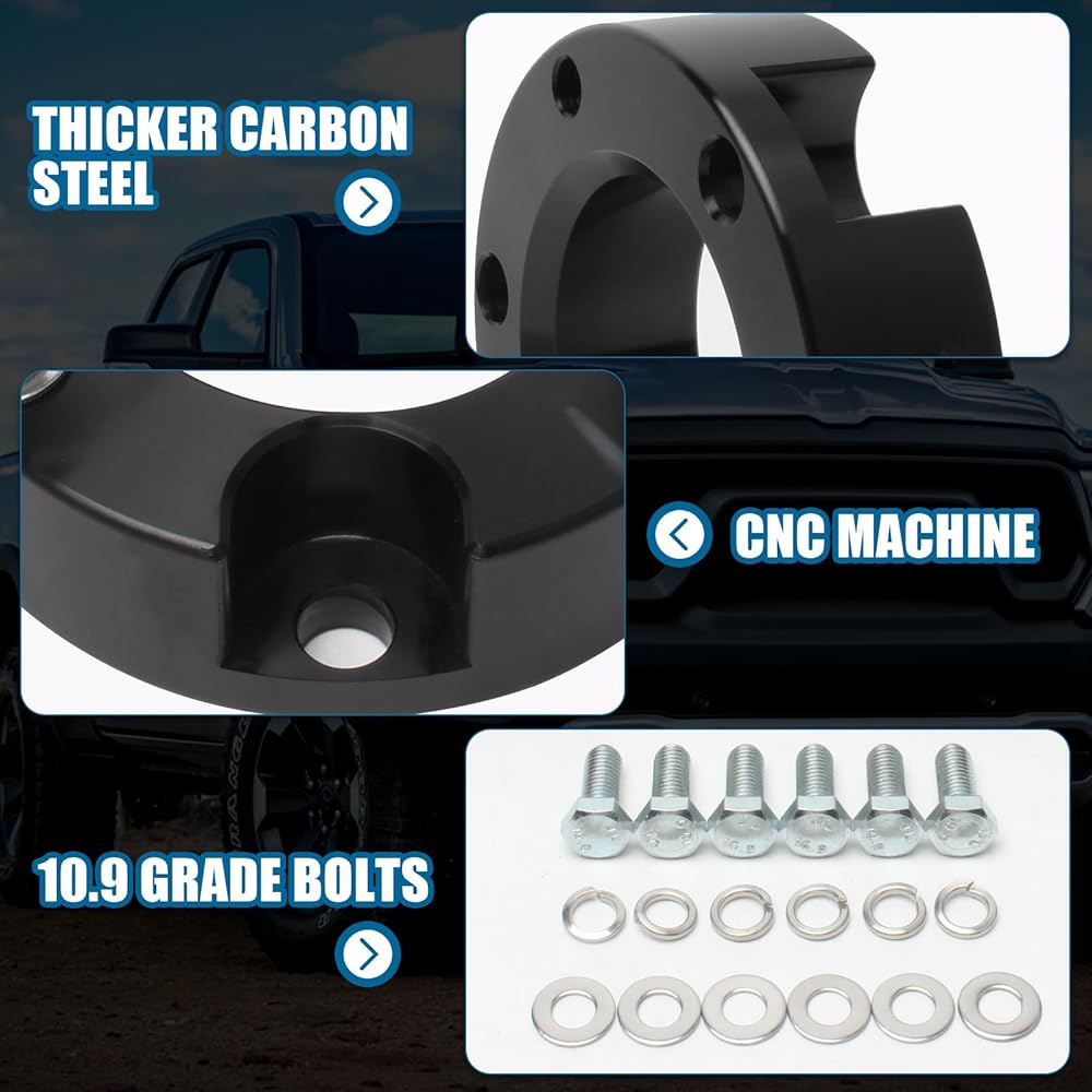 Benifits - This kit improves the look of your vehicle by lifting the front of your truck to even out the overall body of the vehicle. It can be helpful to go off road or to a snowplow or trailer. It allows you to fit larger custom rims and tires and you will get MORE Comfortable Riding Experience.