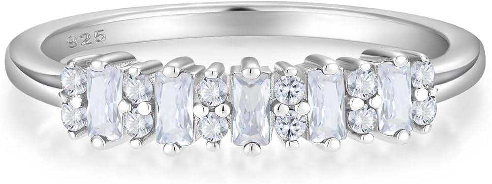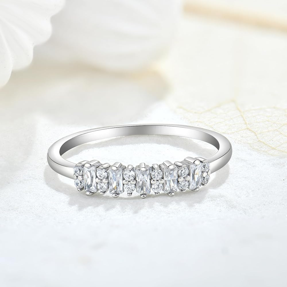 Starchenie 925 Sterling Silver Stackable Ring Baguette & Round Cut Half Eternity Band Rings for Women Size 5-10