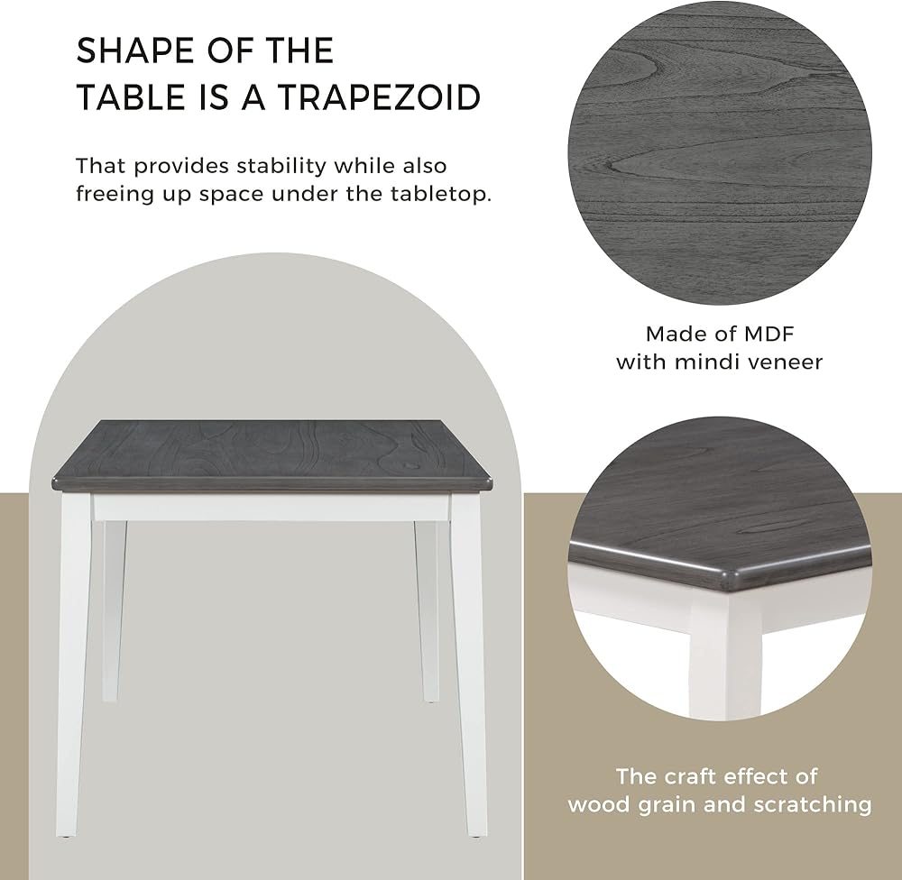 Without too much decoration and modification to the wood, this dining table set is simple and artistic, keeping the natural texture of the wood. This classic and traditional style dining table set has three colors for you to choose from, that is, natural wood wash, white+gray and espresso. Because they are low saturation colors, they can be easily matched with various decoration styles and can naturally blend with your furniture.