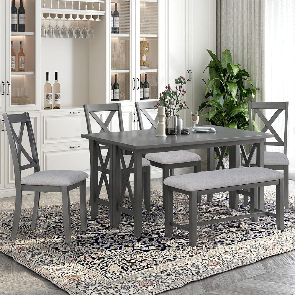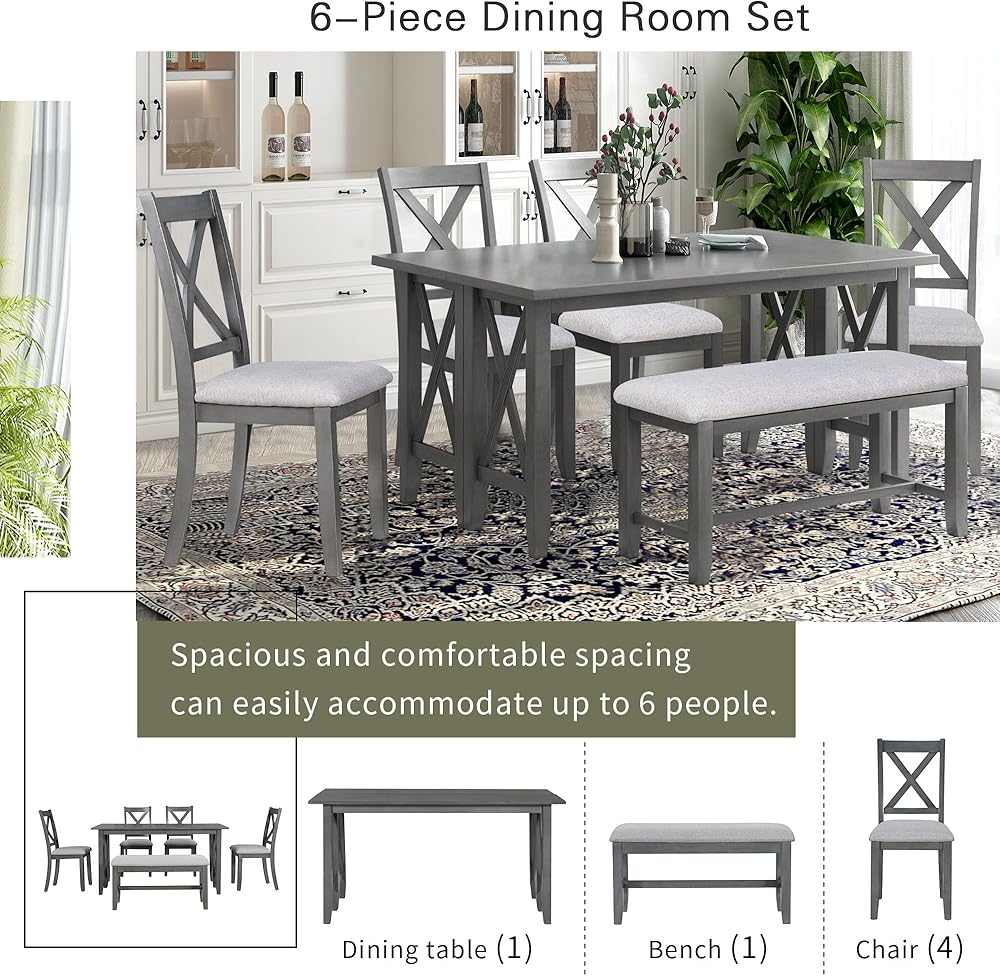 6-Piece Dining Room Set:This kitchen table and chairs set is designed for families, providing ample space and comfort for up to 6 people. The rectangular table measures 60 inches x 36 inches and stands 30 inches tall. Each of the six dining chairs measures 18 inches x 19 inches x 38 inches, ensuring spacious and comfortable seating.