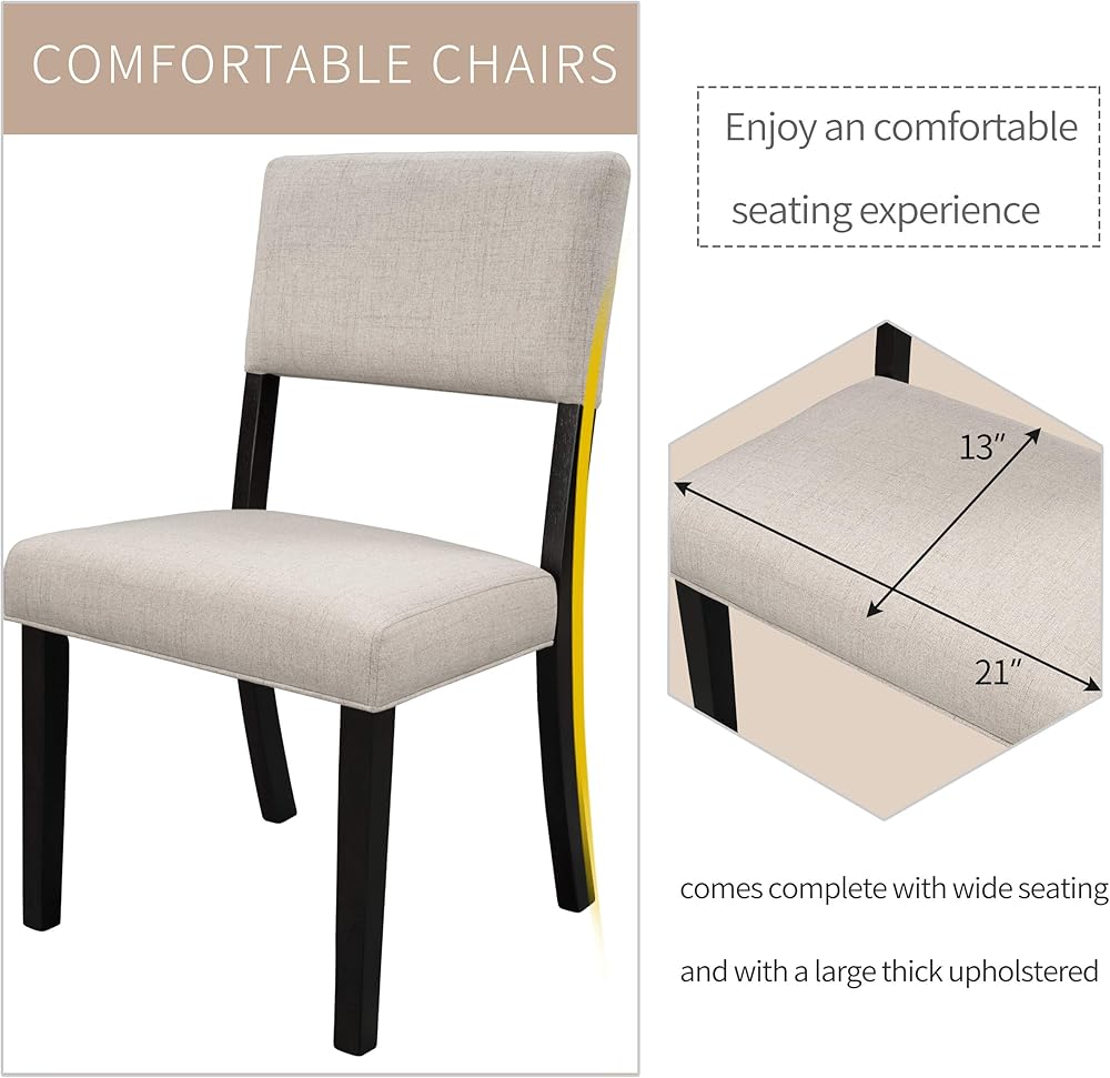 Comfortable Seating Experience:The chairs feature durable wood construction with large, thick upholstered seats for added comfort. Each seat measures 21 inches in length and 13 inches in width, ensuring ample space for comfortable dining. The upholstery is designed for easy spot cleaning with a damp cloth, making maintenance hassle-free.