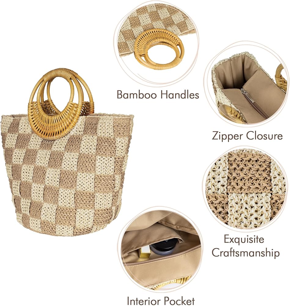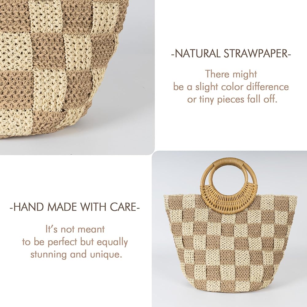 [ Premium Quality ] The woven beach bag for women is crafted from high-quality natural fiber straw, ensuring durability and lightweight comfort. The natural, earthy texture of the straw lends it a distinct character, while its eco-friendly composition resonates with sustainable fashion.
