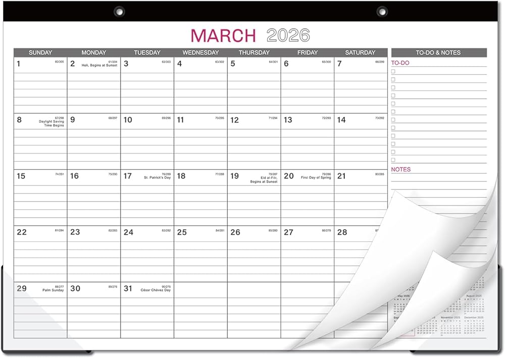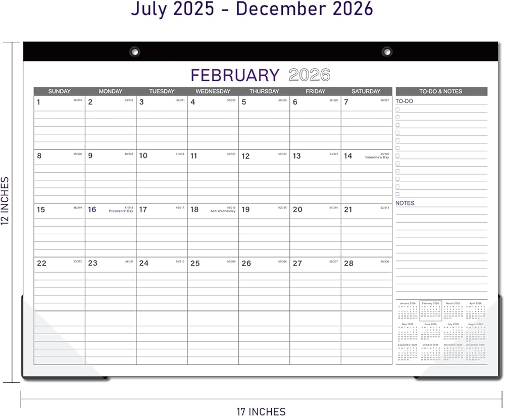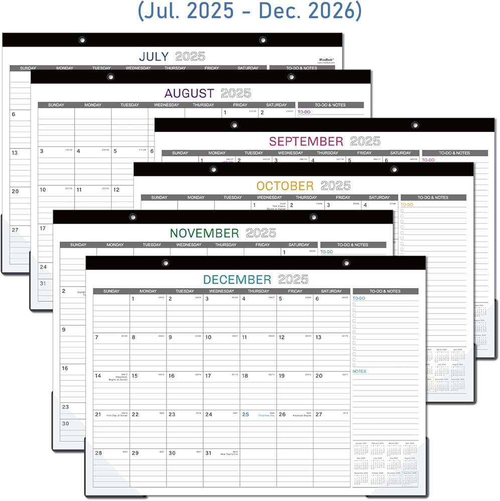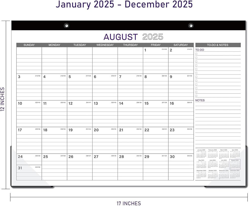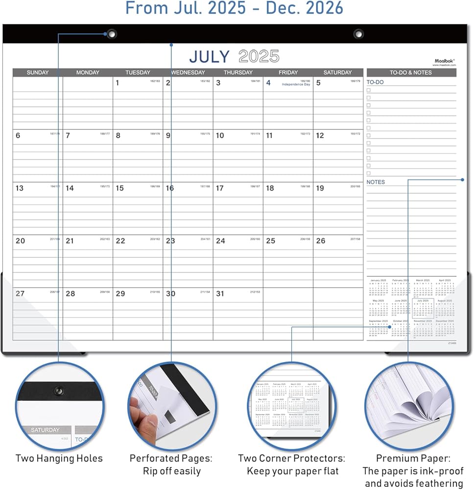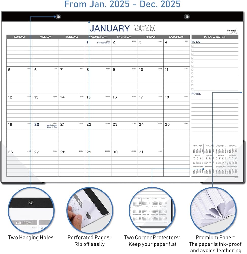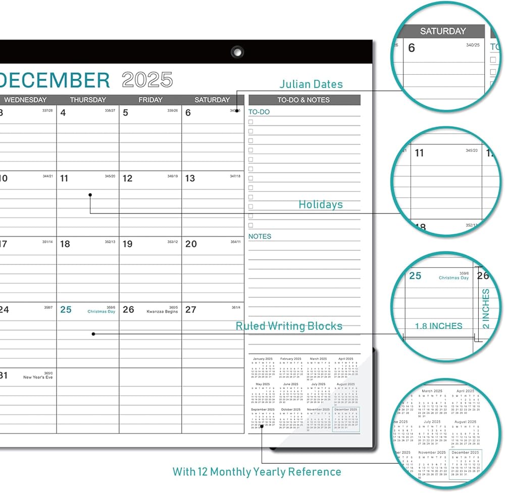 SUFFICIENT LINED BLOCKS - Large, ruled daily blocks offer you ample space for scheduling your busy life. Each month features daily block( 1.8" x 2") with Julian dates and holidays, to-do list as well as notes.