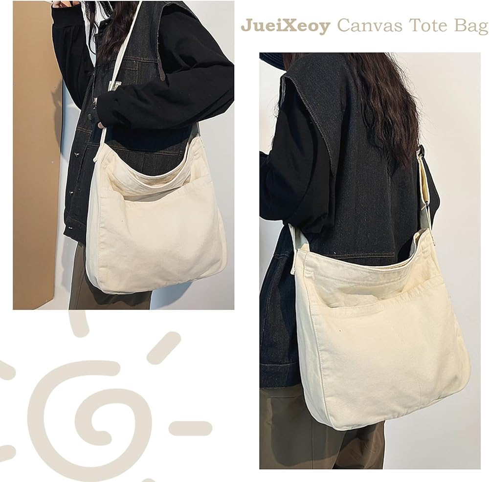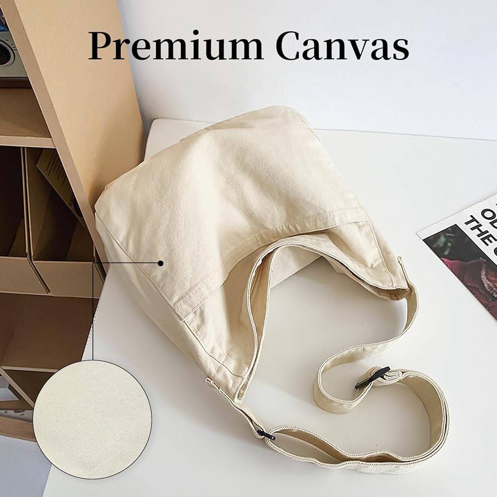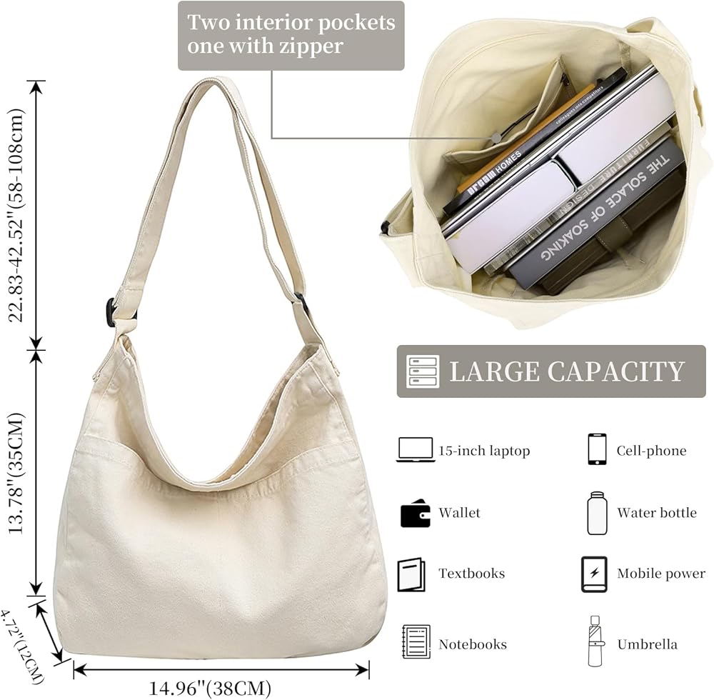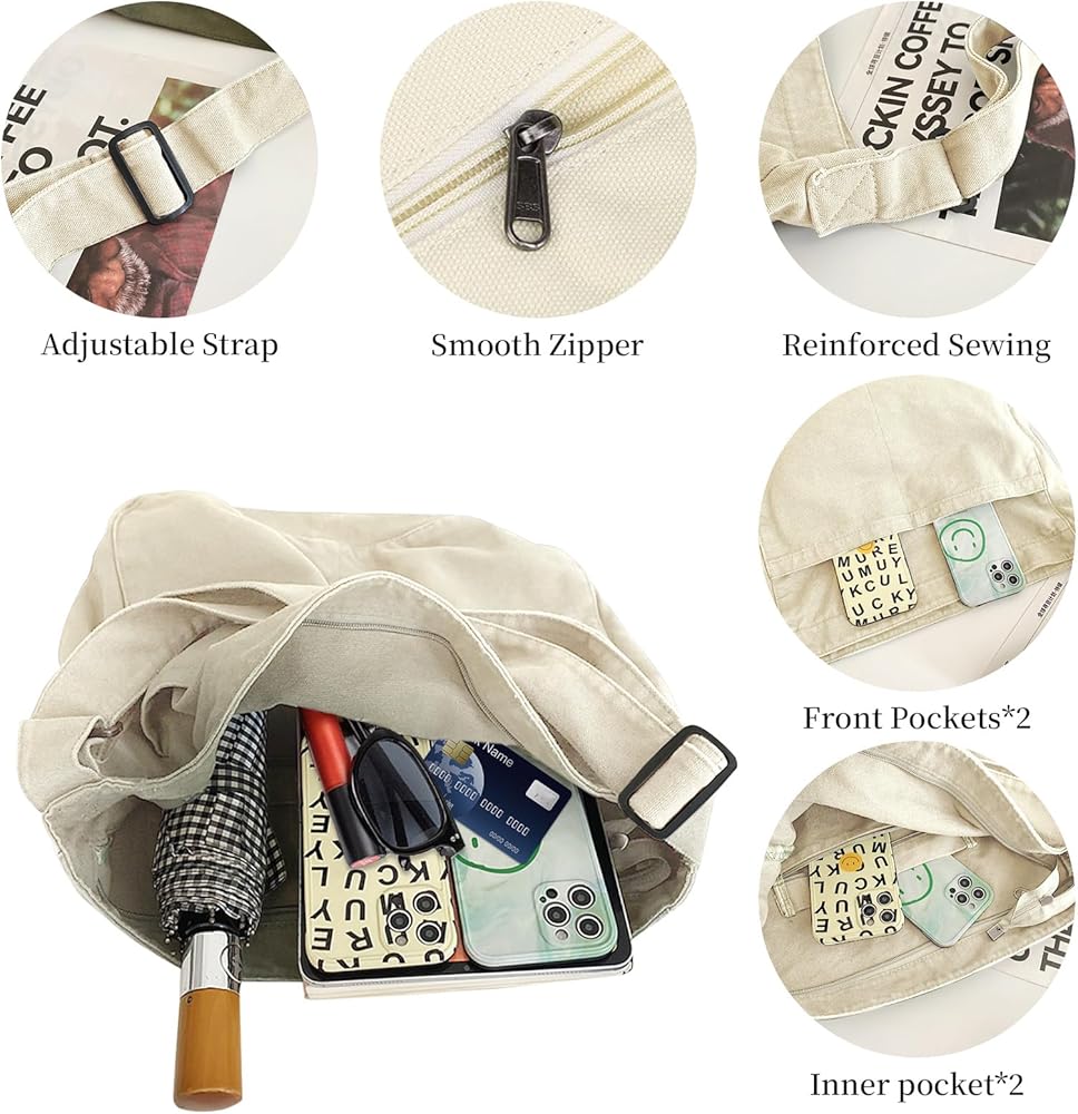 ✔Size & Structure - 14.96"L x 4.72"W x 13.78"H. Adjustable shoulder strap is 23-42 inch. The canvas tote bag include 2 inside zipper pocket, one of them has a zipper can store important stuff. 2 oversized outside open pocket, which can store some items that need to be used at any time. Main space has zipper closure to ensure safety of your belongings.