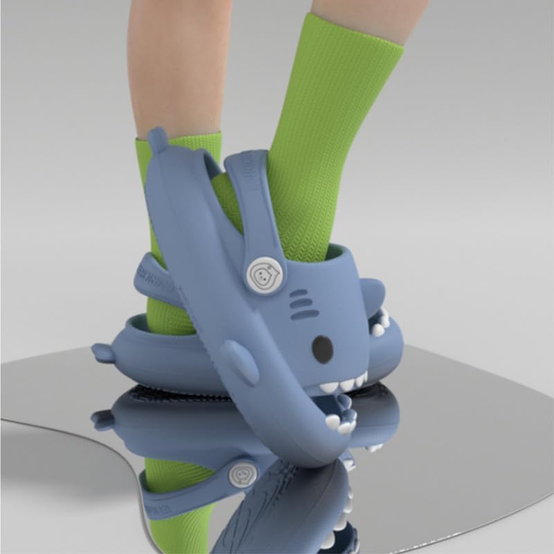 Exceptionally Durable and Safe: Our shark slipper boasts original and authentic trademark patent design certification. Its sole is engineered with double anti-slip technology, featuring a non-slip outsole with concave and convex texture for a robust grip on various surfaces.