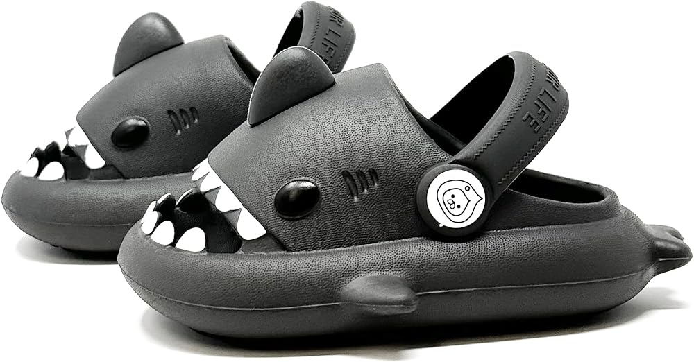 allgala Shark Slides Slippers with Backtrap Non-Slip Novelty Open Toe Sandals for Boys Girl Indoor & Outdoor Comfy Cushioned Thick Sole Cute Cartoon Shower Cloud Slippers Beach Pool Shoes