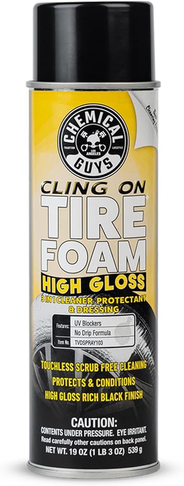 Cling On Tire Foam High Gloss 3 in 1 Cleaner, Protectant, & Dressing has a precision spray control nozzle that helps keep the deep cleansing foam where you need it, helping minimize and control over-spray, then stays where you spray it to maximize contact time and cleaning power. Simply spray and watch dirt and grime fall away, no touching or scrubbing required! It's the easiest way to clean, shine, and protect your tires, and it is so easy, anyone can do it!