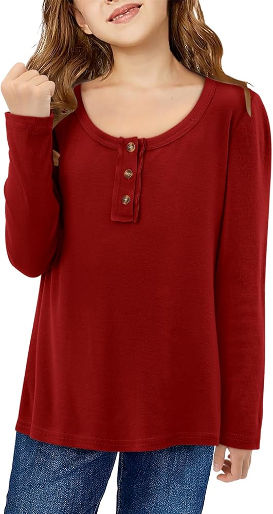 - Design: Round neck, button details, long sleeve, solid color shirts for girls