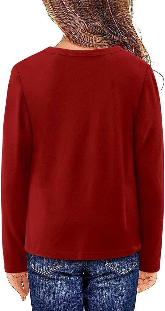 storeofbaby Girls Long Sleeve Shirts Casual Crew Neck Tops Solid Button Blouses 5-14 Years