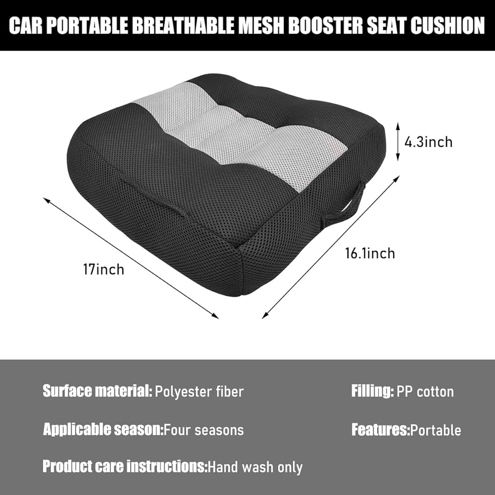 Car Booster Front Seat Cushion, Breathable Mesh Adult Booster Seat Pad, Portable Increasing Height Cushion for Most Cars, Offices, Homes, Universal Car Accessories (Black&Gray)