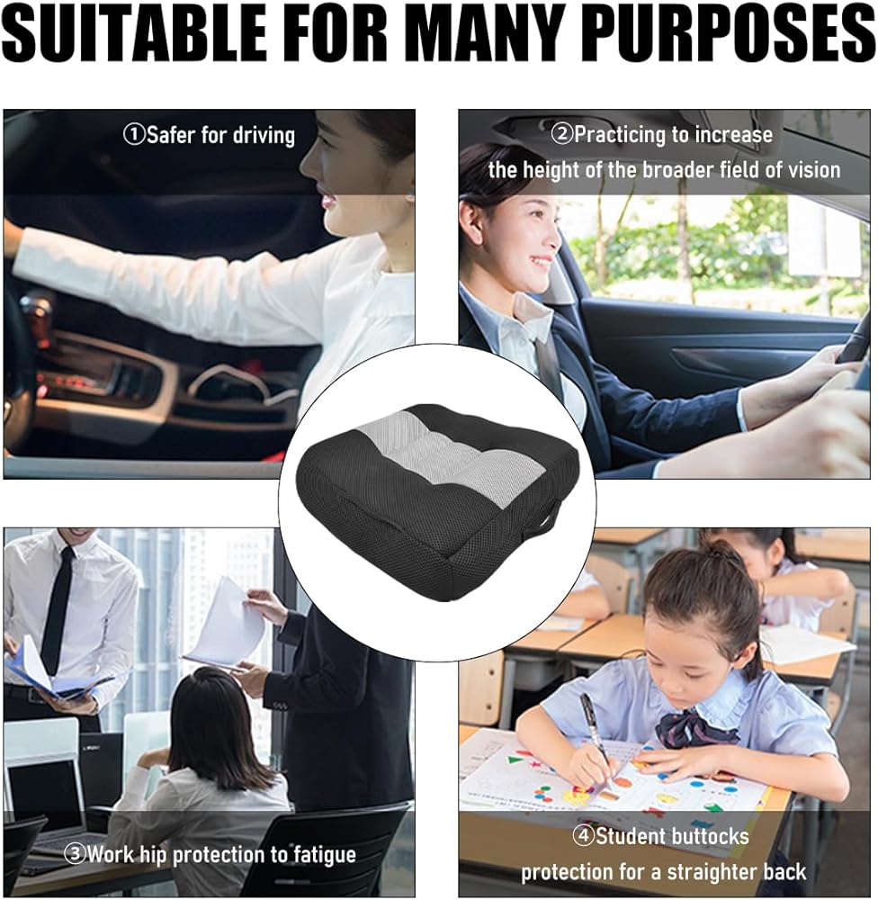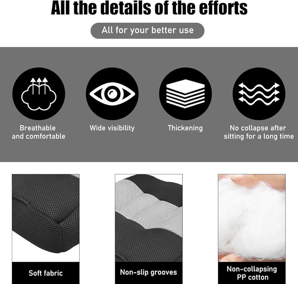 【Wide Application】: The booster cushion measures 17 × 16.1 × 4.3 inches, which is compatible with the front bottom seats of most car models. With its wide range of applications, you can use it as a cushion in the office, home, restaurant, camping or school.