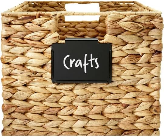 Get organized with Lulalu Metal Bin and Basket Label Clips for Storage Bins. Use our clip on labels for storage bins to reduce clutter and quickly see what is in all baskets, bins and boxes in your home or office. Durable metal clip on label holders work for hard-to-label storage baskets like felt baskets, rope baskets woven baskets, fabric bin labels and more. Simple and reusable, our bin labels clip on to decorative bins and baskets to quickly serve as basket labels, tags for baskets, and labels for open top storage bins. Lulalu bin labels for storage bins work well for use as pantry labels, rope basket labels and storage bin labels. Bring order to toys in the playroom, fabric storage cube baskets in the bedroom, bamboo sweater bins in the closet, office supply bins and anywhere else you need storage bin labels. Bin and basket labels clip on quickly and the storage bin labels are simple to replace with standard business card sized inserts. The metal black label holder is compatible with dry erase markers or colorful chalkboard markers for organization with personality.