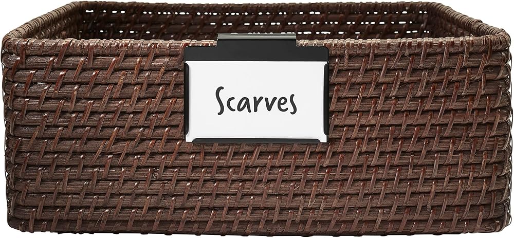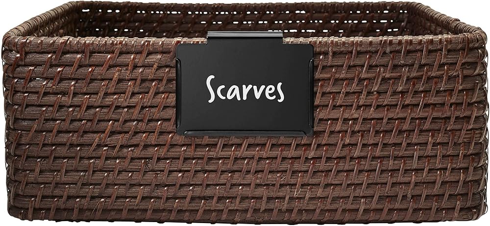 Simple Bin Clip Labels for Baskets: Use bin clip labels with wood, plastic and natural baskets that are difficult to label such as rope baskets, felt baskets, wicker baskets, and fabric bins.
