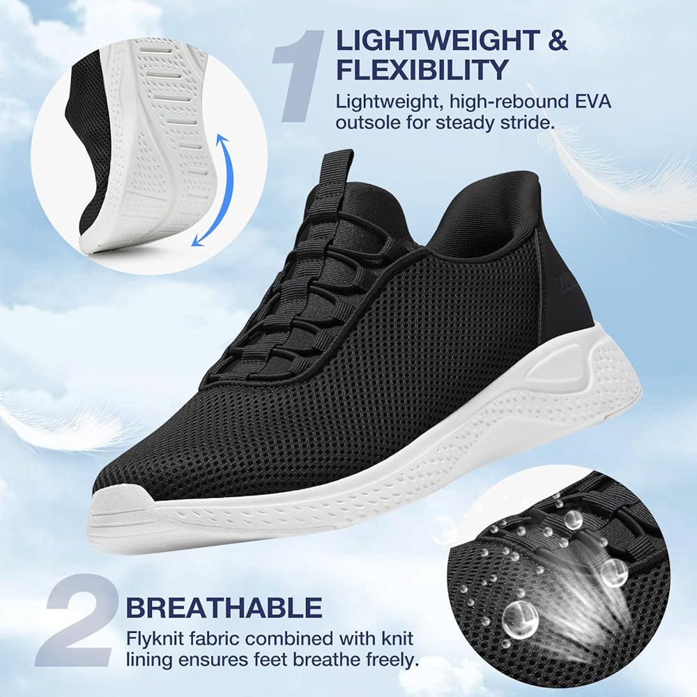 [Easy Wear & Off ]: The "slip on heel" design makes it a breeze to slide your shoes on and off, elevating your shoe-wearing experience. Additionally, elastic No-Tie Lacing System paired with an elastic opening cater to various instep sizes, ensuring a supremely comfortable fit.