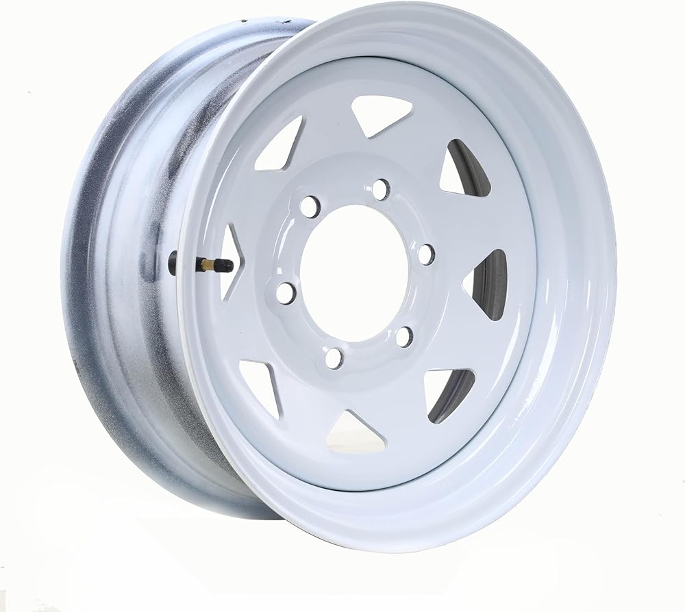SAFETY--FULL nylon cap ply overlay cross entire tread area, significant upgrade from most other products on the market have nylon strips on shoulder area only, add critical safety feature!. FEATURE-- Unique “Scuff Guard” ring on tire wall for better tire side and rim protection. DURABLE: 8mm deep tread depth vs 5.6 mm of other cheap competitors, durable and longer mileage life. PERFORMANCE: 10 ply rated, load range E. Load Index:117. Speed rating L--up to 75mph. WHEEL DETAIL: 6 Lug on 5.5" bolt pattern, offset: 0, style: White Spoke. SAFETY CERTIFIED: Meets or exceeds applicable DOT standards to provide dependable performance season after season for hauling cargo safely.