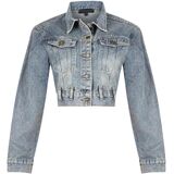 Short denim jacket Washed and frayed edges, button front closure, frayed, long sleeves