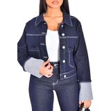 Folded hem flap button denim jacket, button closure, two front chest pockets, ripped and frayed denim jacket, folded hems for a more stylish jacket!