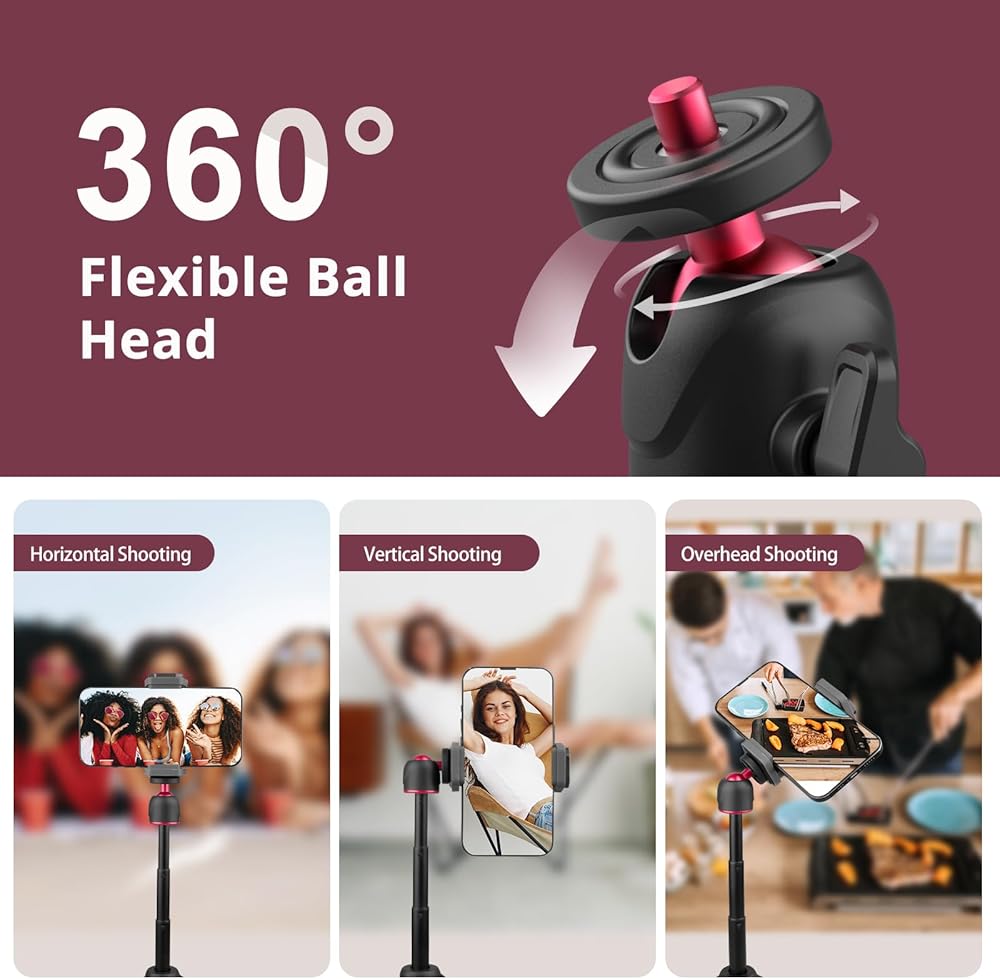رقبة الإوز المرنة - قم بتوسيع منظورك: تعمل رقبة الإوز على تمديد ارتفاع الحامل ثلاثي القوائم من 16 بوصة إلى 87 بوصة وتوفر مرونة 360 درجة، مما يتيح نطاقًا واسعًا من الزوايا لكل شيء بدءًا من اللقطات ذات الزاوية المنخفضة إلى المناظر الجوية واللقطات ذات الزاوية الواسعة