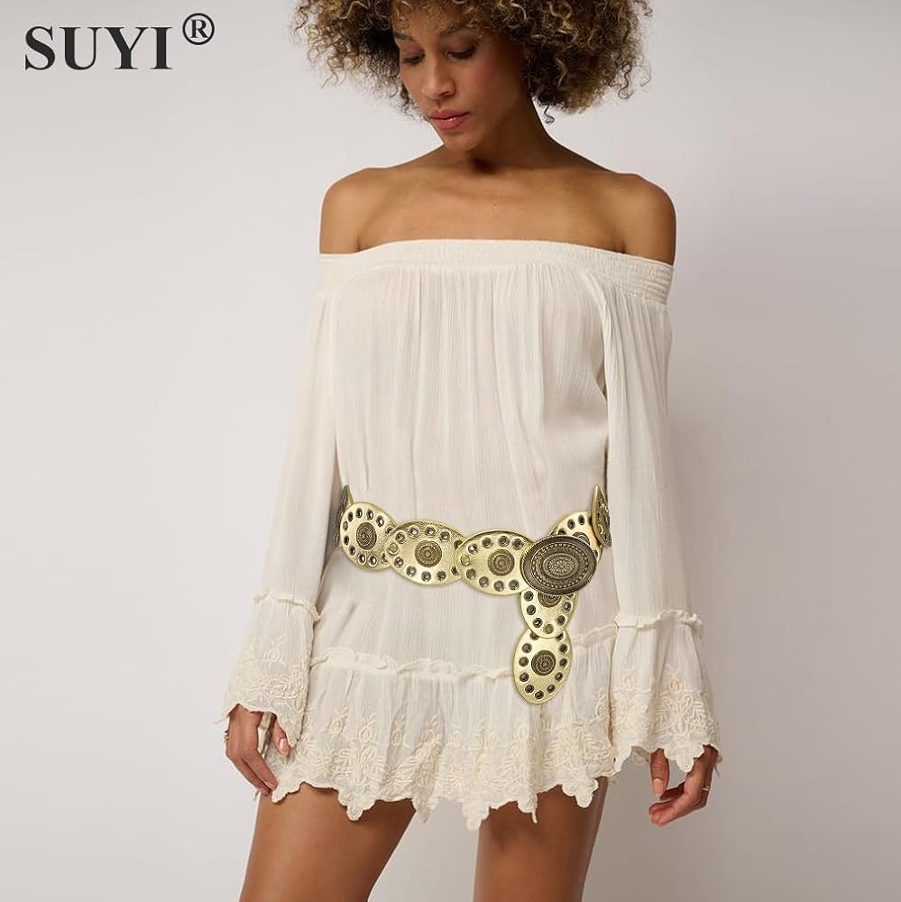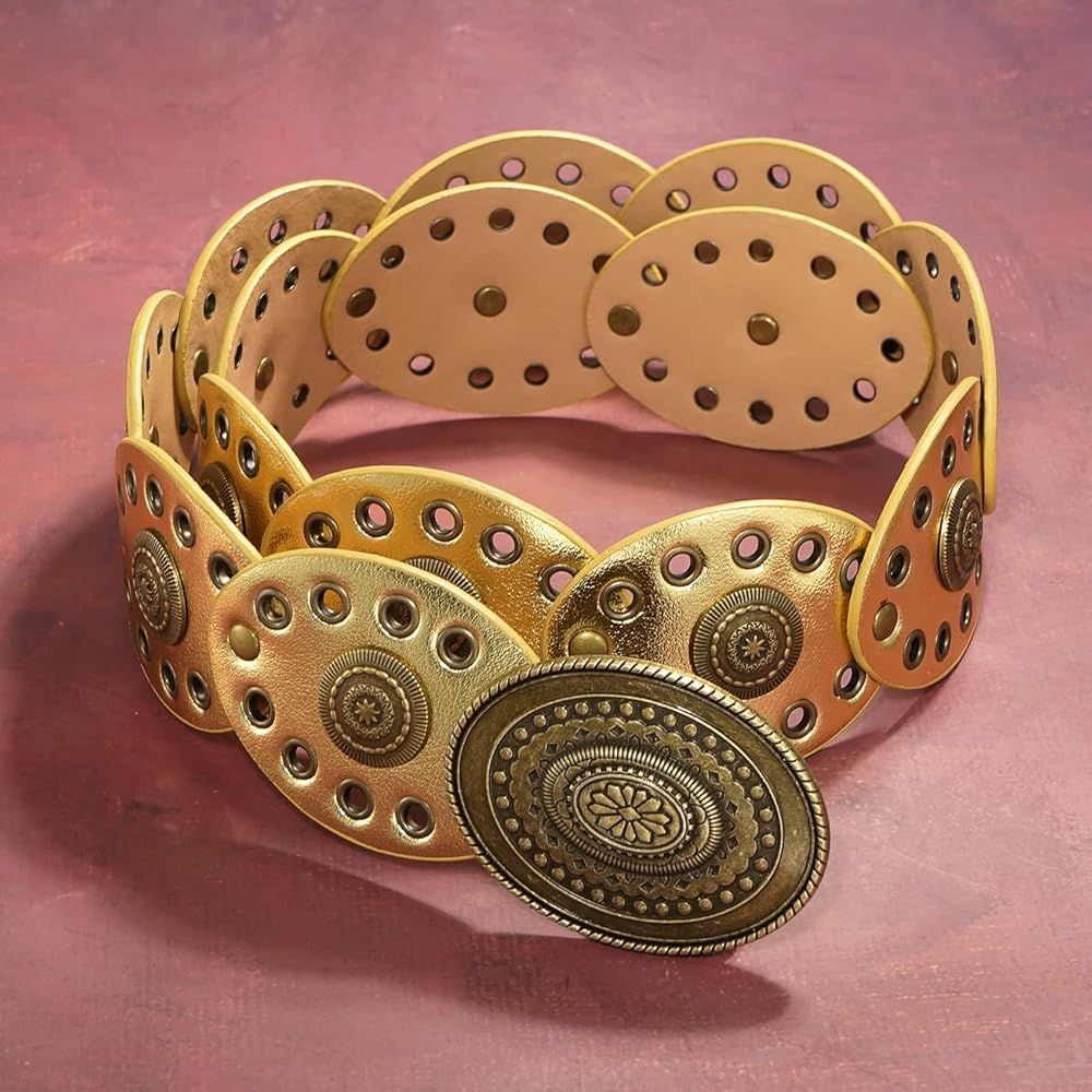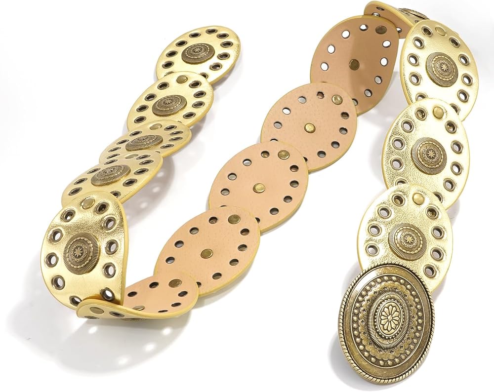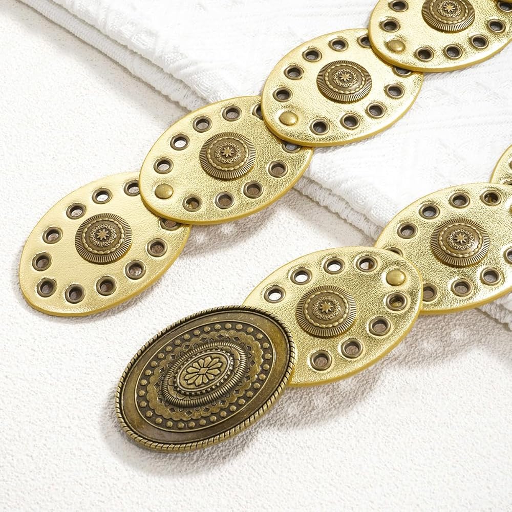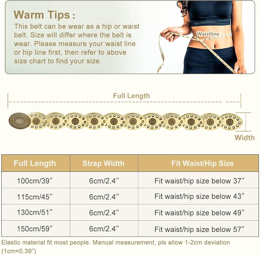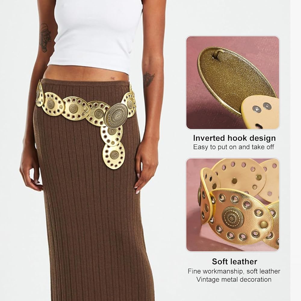 Design: This wide belt is uniquely designed with western vintage style design elements, giving it a classic yet fashionable look. This wide disc belt is easy to match and suitable for dresses, skirts, sweaters, shirts, down jackets or other clothes.