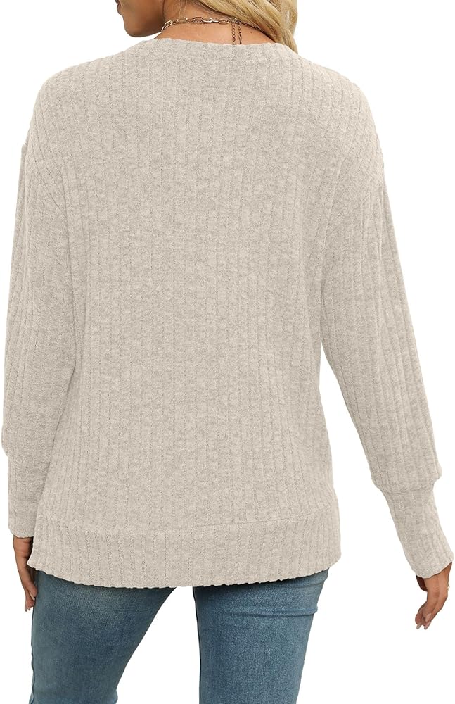 Heymiss Womens Sweaters Dressy Casual Crewneck Long Sleeve Shirts Loose Fall Fashion Sweatshirts