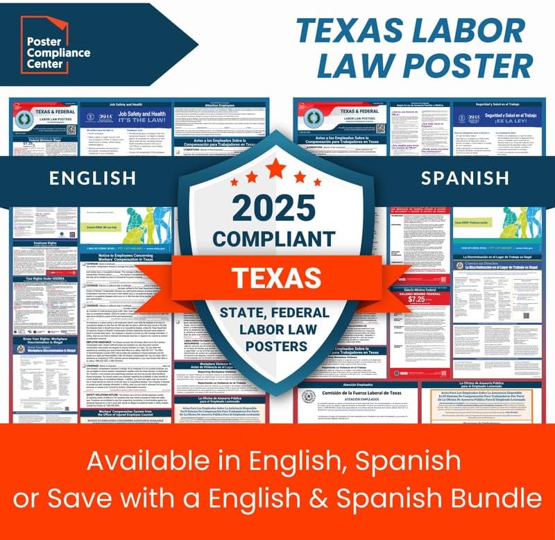 Labor Law Posters 2025 - Texas Labor Law Poster State, Federal, OSHA Compliant, Accurate & Up to Date, Poly Paper Labor Law Poster 2025 Texas, 24"w x 36"h (Bundle)