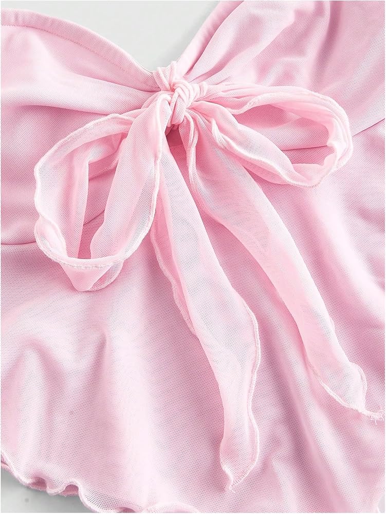 • Features: tie front, strapless, lettuce trim, strapless, sleeveless, flared, boho tube top