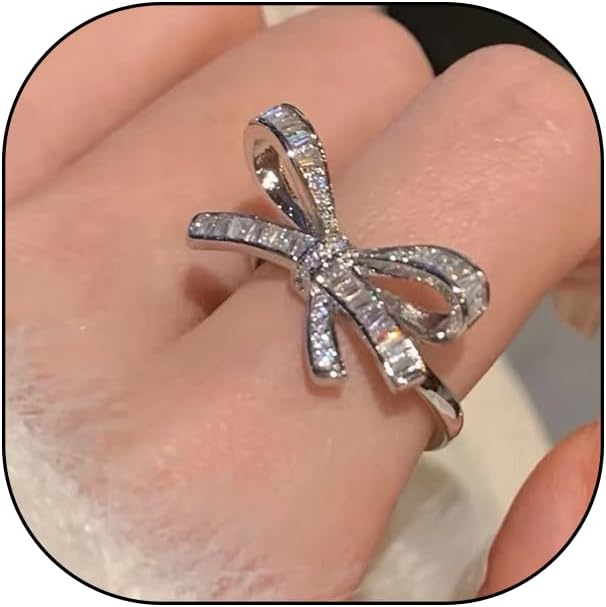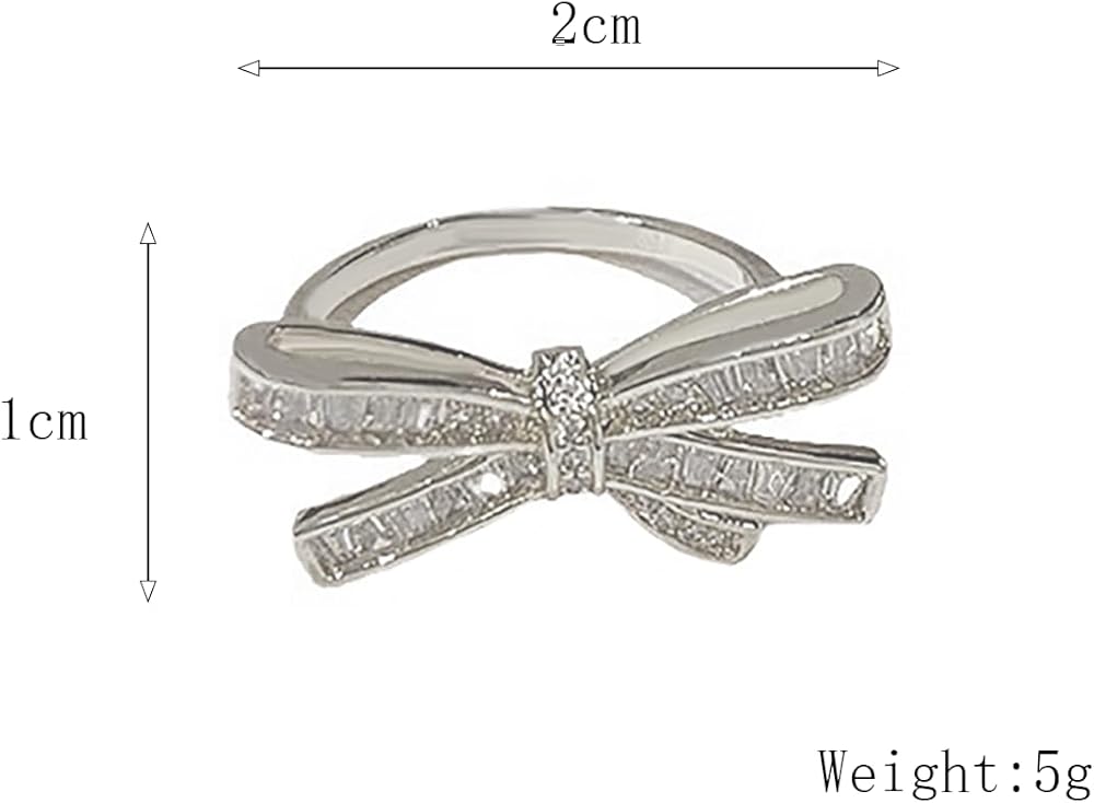 1.This modern design ribbon bow ring with a novel style, inlaid with a lot of zircon, let you wear it, beautiful and beautiful, we have two colors for you to choose, gold and silver, both very versatile.