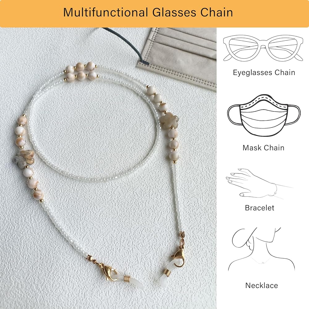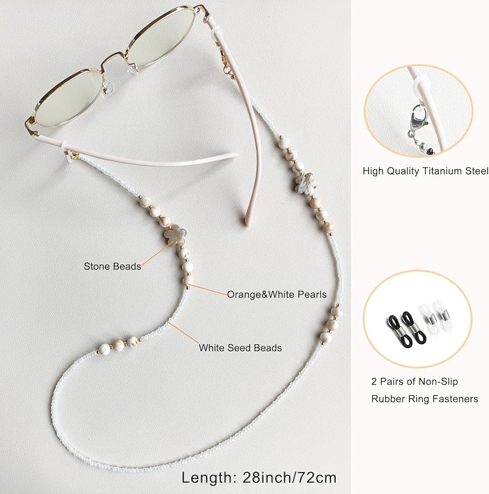 Non-slip Eyewear Chains: Glasses chains come with 2 pairs of non-slip silicone rings that can be slid and adjusted to fit, pulling them tightly to secure them, which prevents your glasses from getting lost