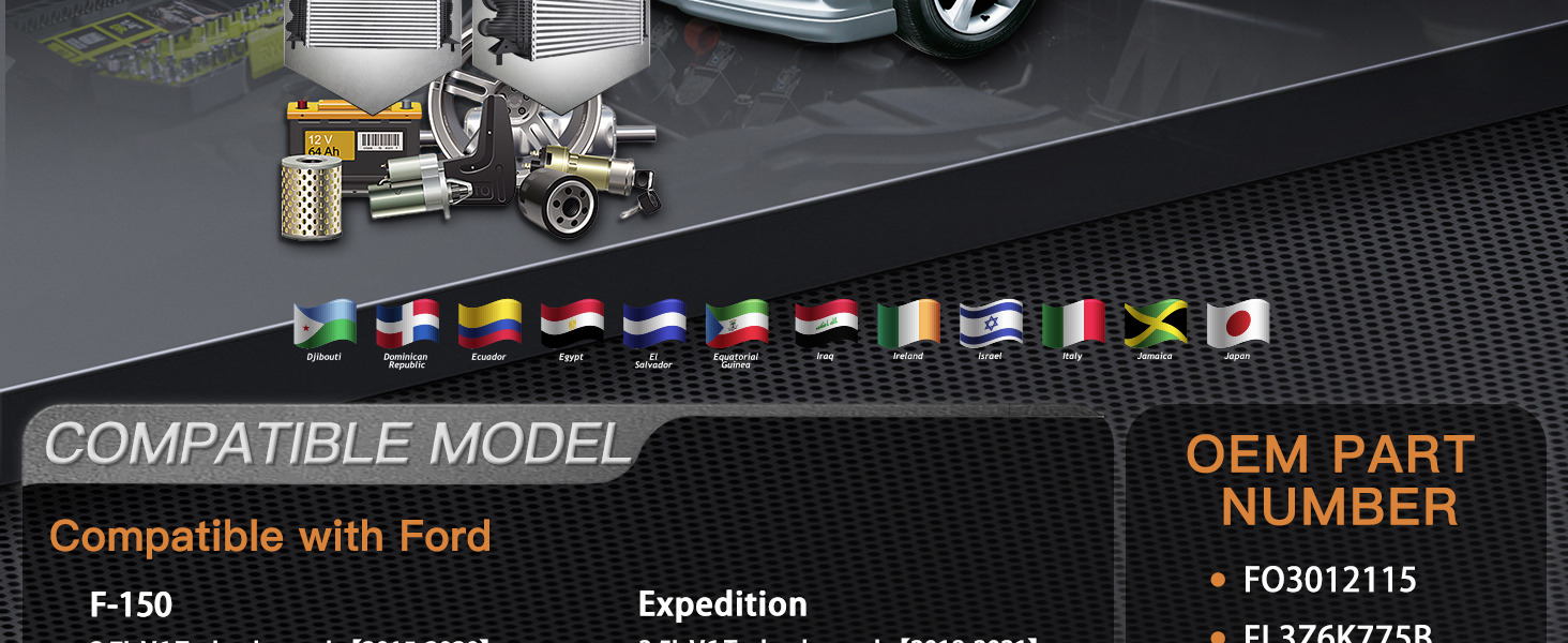 OEM part Numbers- 18073, FO3012115, FL3Z6K775A, FL3Z6K775B, FL346K775AB, FL346K775AC.