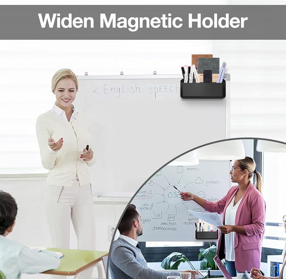 MoKo Magnetic Dry Erase Marker Holder, Widen Magnetic Marker Pen Storage for Whiteboard, Refrigerator, Locker, Laundry Storage Basket Lint Holder Bin for Dryer, Washing Machine, Black
