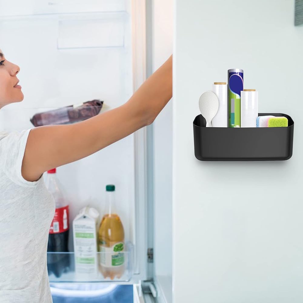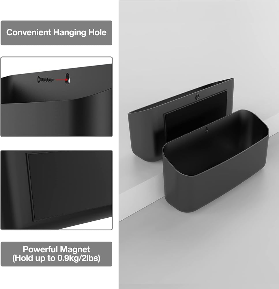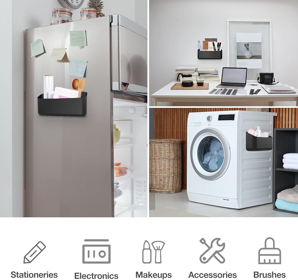 Space Saving Organization - Large capacity magnetic holder helps collect and store office supplies, stationeries, electronics, kitchen supplies, lint or laundry room debris, magnetic attachment to the side of the equipment takes no much space and convenient to reach the items