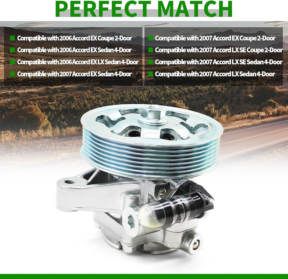 Compatible with 2007 Accord EX Coupe 2-Door POWER STEERING PUMP