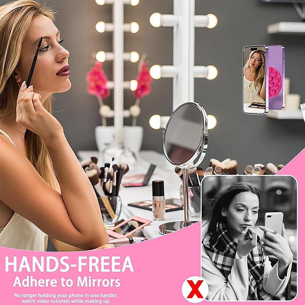 Wide Application: This magnetic suction cup phone holder allows you to attach your phone to any smooth surface for shooting, such as makeup mirrors, glass windows, computer screens, refrigerators, tiles, etc. It frees up your hands, enabling you to create your media content anytime and anywhere.