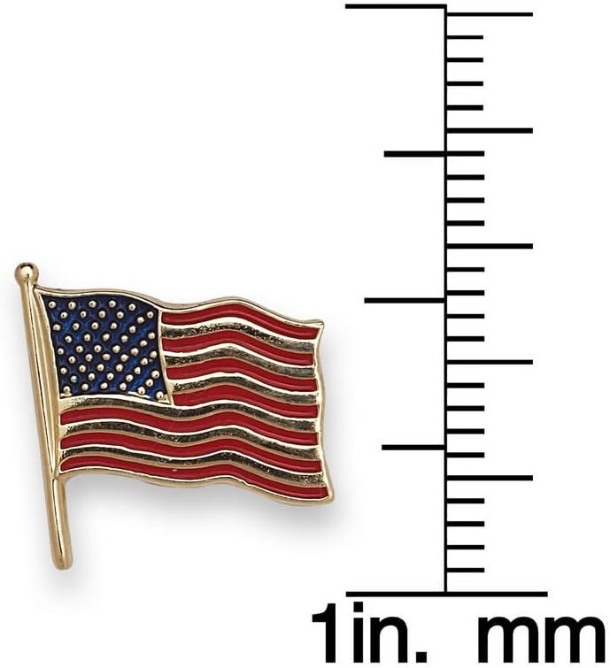 Symbol of Patriotism: Wearing the American flag lapel pin demonstrates your love and loyalty to your country. It serves as a symbol of patriotism and can be a meaningful way to show your pride in being an American. This pin measures 14mm wide by 14mm long. It is secured by a Tie tack clutch (plated metal)