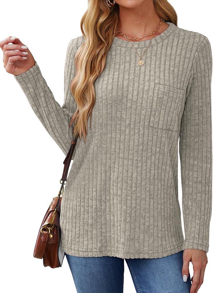 ✦Designs: Classic crewneck/round neck sweatshirts decorated with Pocket, long sleeve fall sweaters, tunic tops for women loose fit dressy. Invisible stripe details can help you look slimmer and show your figure better.