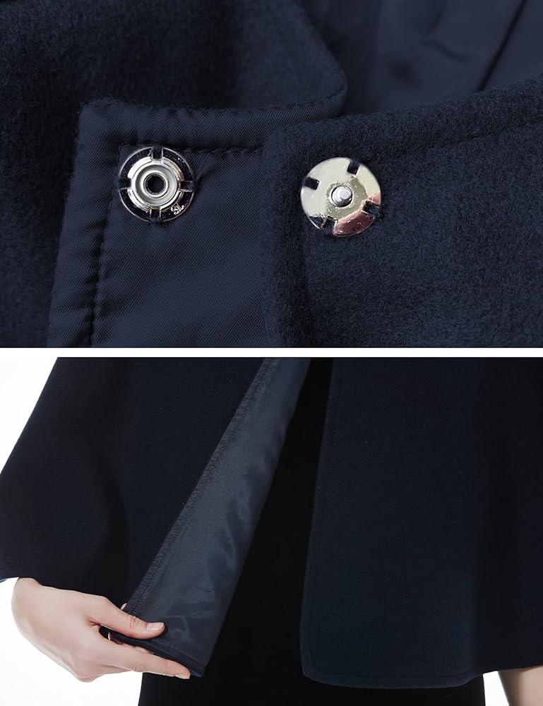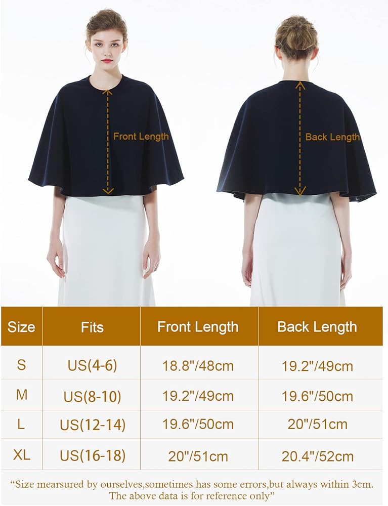 Material: The Cape made of Wool blend and the lining is polyester taff, classic design, warm and cozy. It will keep you warm and fashionable in the spring & autumn.