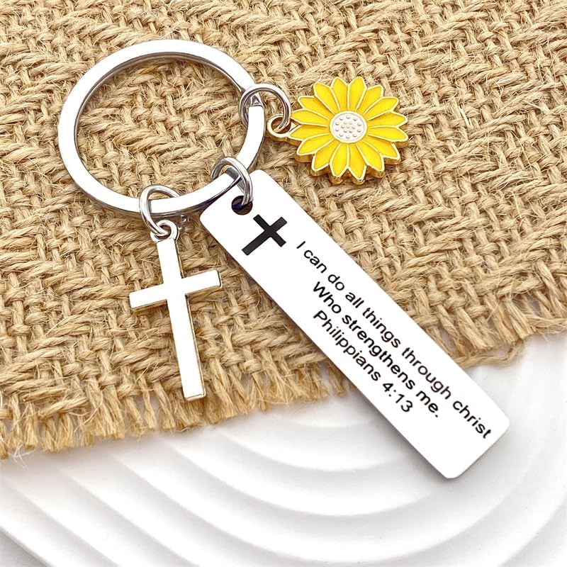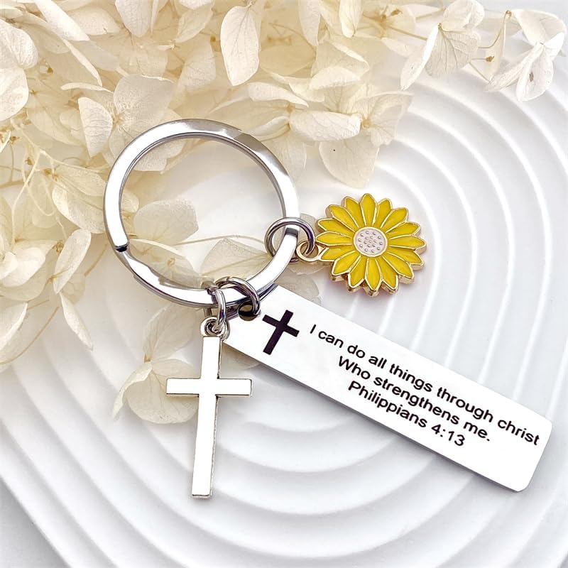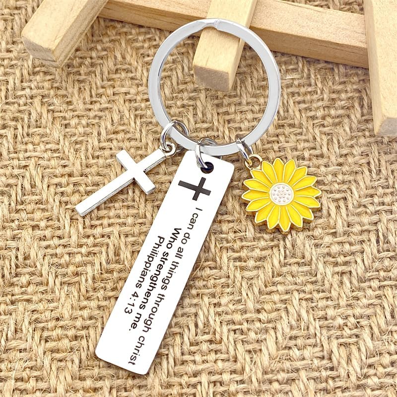 Sjcmbxxs Christian Bible Verse Gifts Keychain Inspirational Scripture Keychains with Cross Pendant I Can Do All Things Through Christ Who Strengthens Me Philippians 4:13
