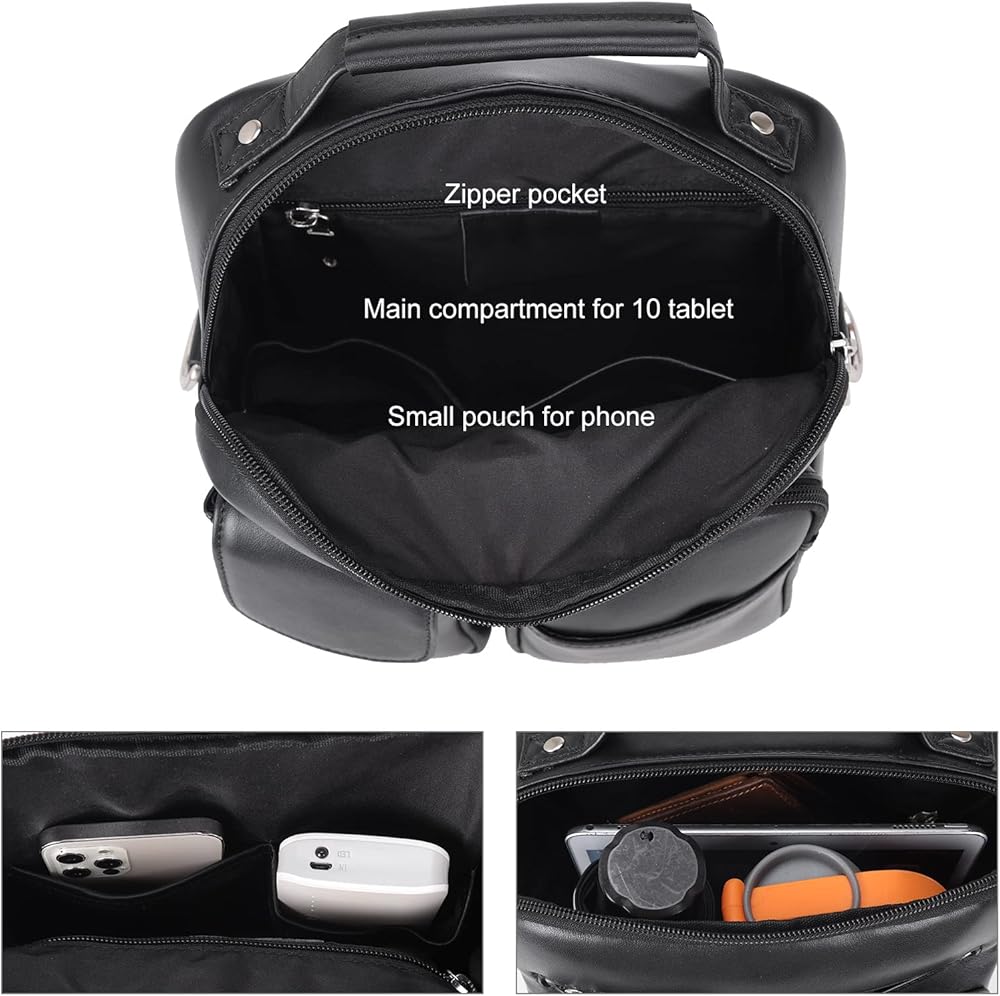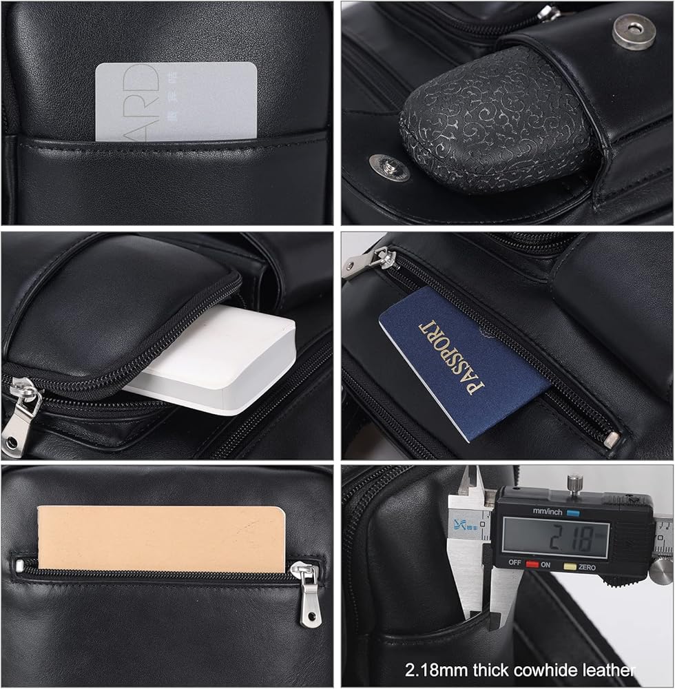 【Full Grain Calfskin Leather】The small 9.7"/10" tablet cross body bag is made of black calfskin leather, which belongs to full grain leather and is known as the best layer of natural leather. The pores of calfs' skin are small and fine. So the texture of calfskin leather is tight, soft, smooth, and also with great flexibility and durability. The black leather crossbody shoulder bag won't stain clotches.