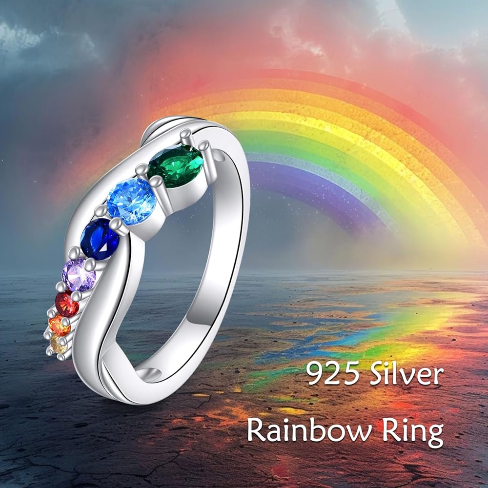 【High Quality Material】The Rainbow ring for women is made of high quality S925 sterling silver with colorful cubic zirconias . We provide lead-free, nickel-free and hypoallergenic necklaces, the metal surface is smooth and durable, not easy to fade, healthy to wear without losing color, and will not cause harm to your skin.