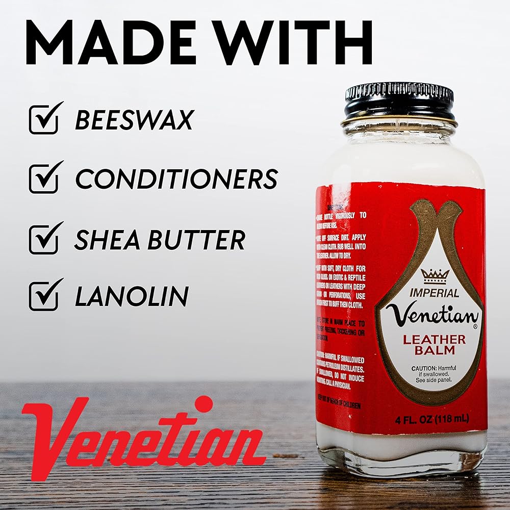 Venetian Imperial Leather Balm, 4 oz, Dark Brown - For Polishing, Removes Dirt, Leather Protection
