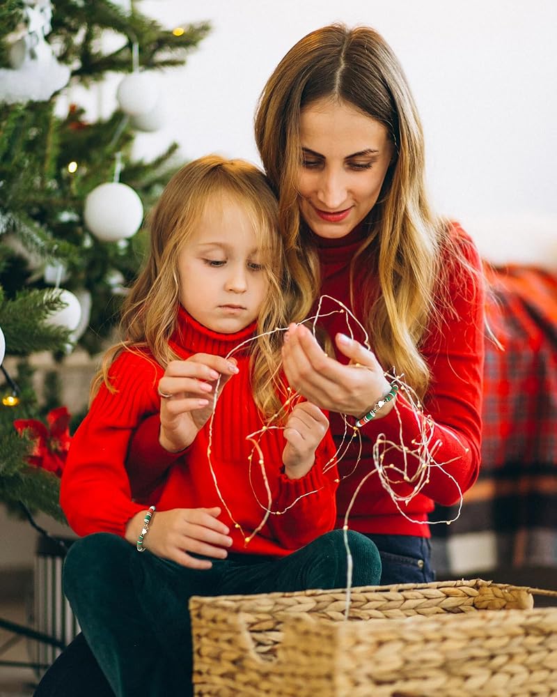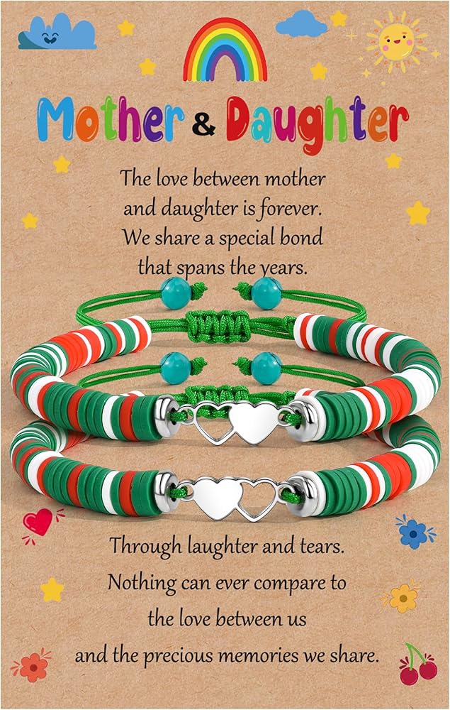 【First Day of School Gifts】Here are 2 bracelets, the big one is for you, and the little one is for your son. Perfect giving to mom, son, grandson, grandmother for the back to school, studying abroad, going away gifts, vacations.