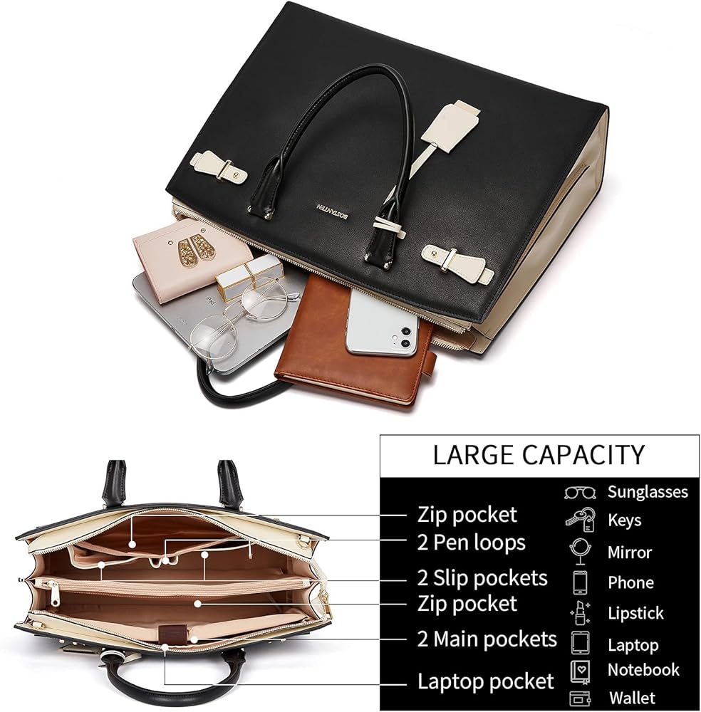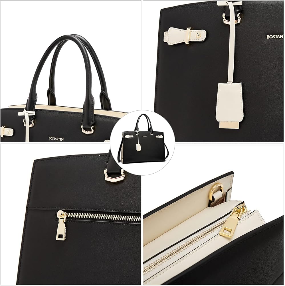 BOSTANTEN Briefcase for Women Genuine Leather Laptop Briefcase Shoulder Work Tote Bag Purse 15.6 Inch and Women Leather Wallet RFID Blocking Small Bifold Zipper Pocket Wallets Card Case Purse
