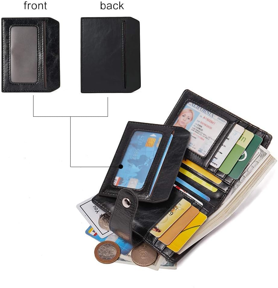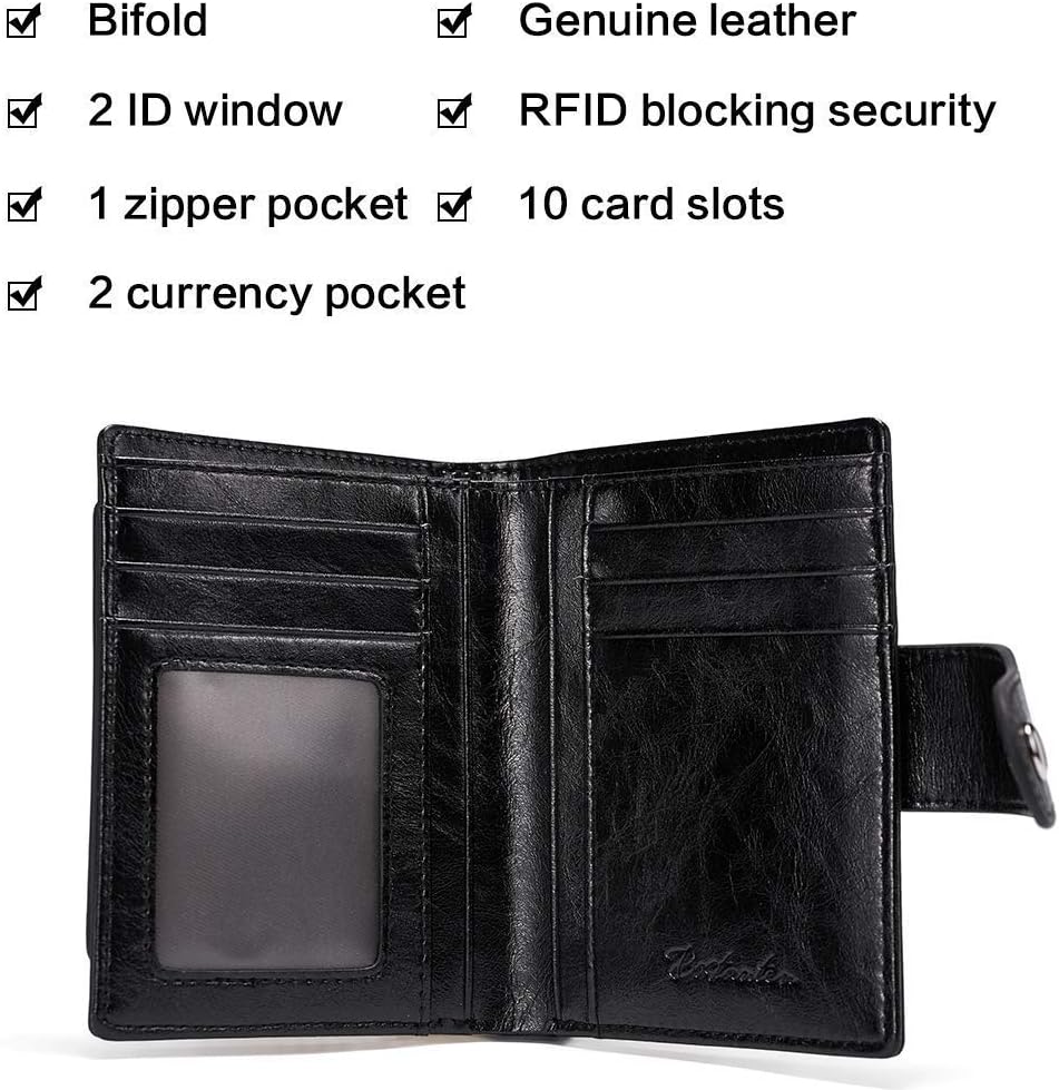 Women Leather Wallet RFID Blocking Small Bifold Zipper Pocket Wallets Card Case Purse with ID Window