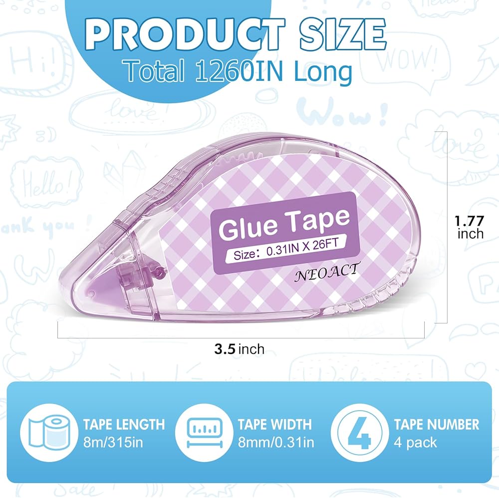 NEOACT 4 Pack Scrapbook Tape,Double Sided Tape Roller for Crafts Scrapbook Supplies,0.31In x 26 Ft Tape Runner Glue Tape for Scrapbooking Gift Wrapping and Junk Journaling Craft Supplies