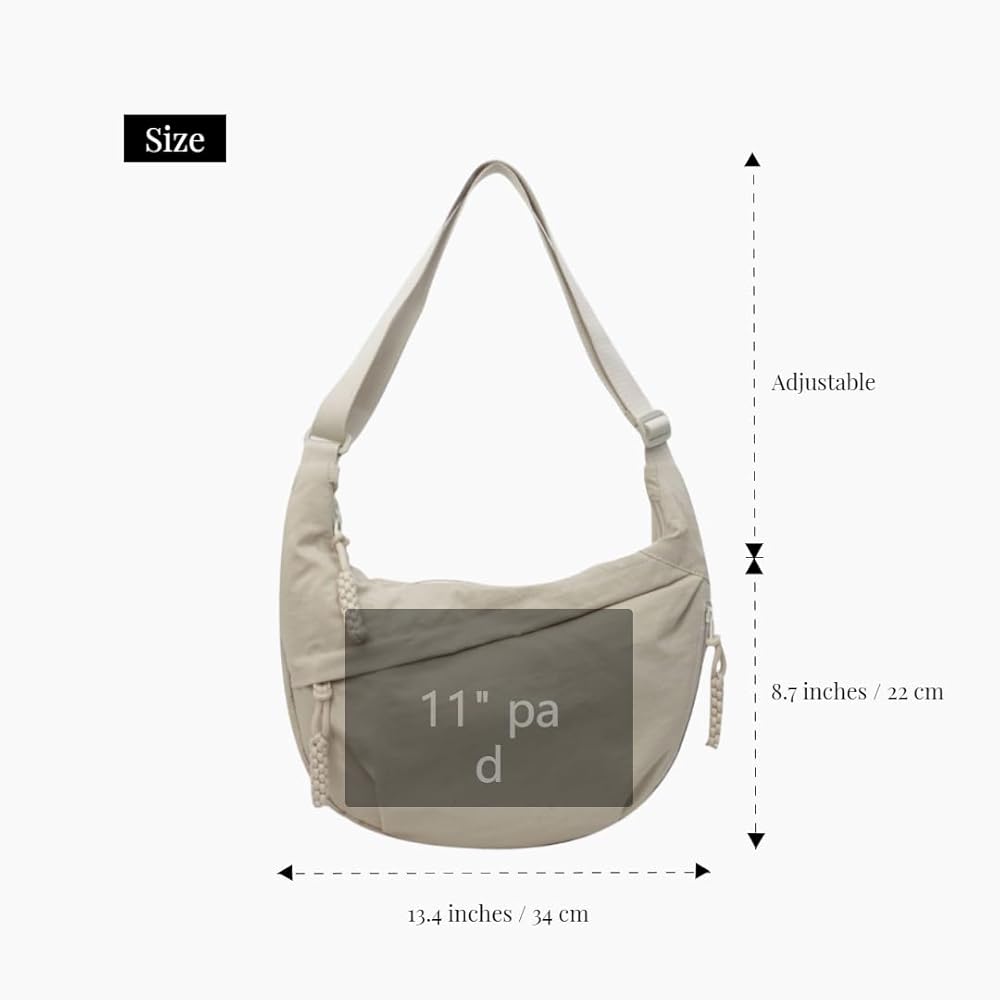 Ideal Size: With dimensions of 13.4 inches/34 cm wide and 8.7 inches/22 cm high, this nylon crescent bag offers a spacious room while maintaining a sleek and manageable profile.