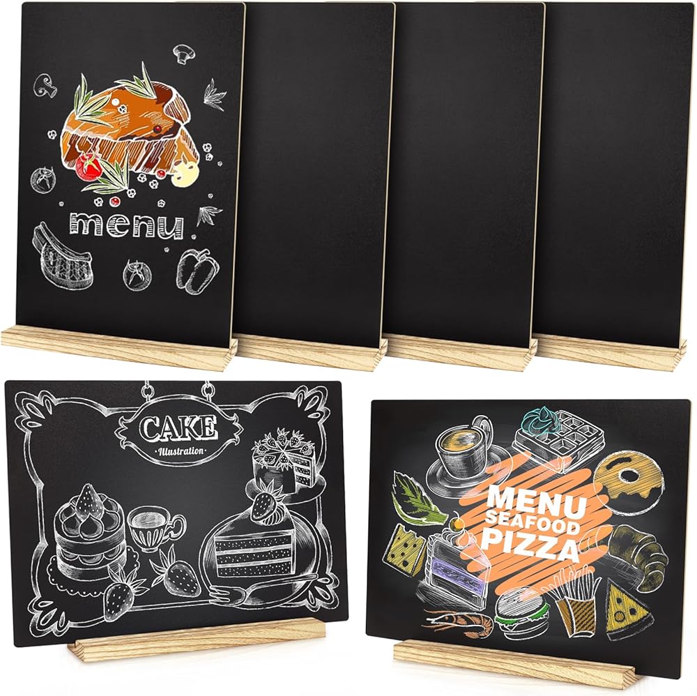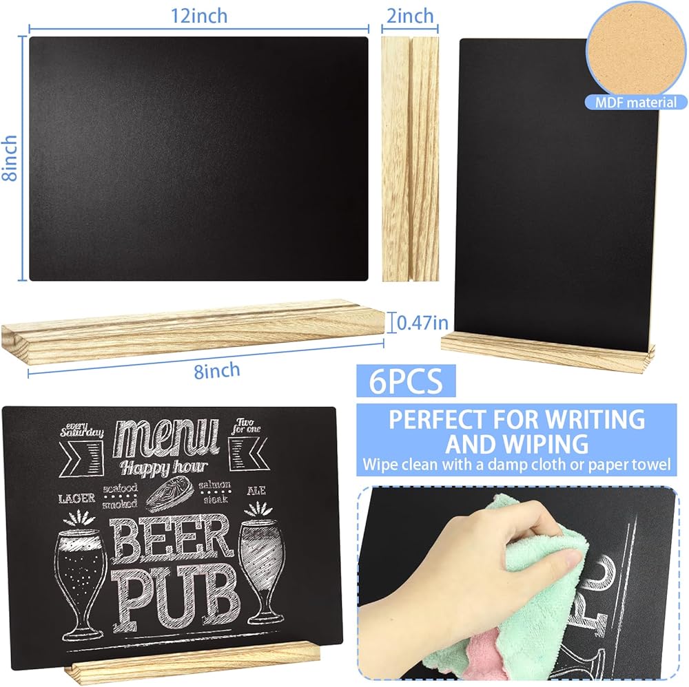 Wpxmer 6 PCS Wooden Chalkboard Signs with Holder, Blackboard Sign for Restaurant Menu Board, Wedding Party Decor, 8x12 Inches