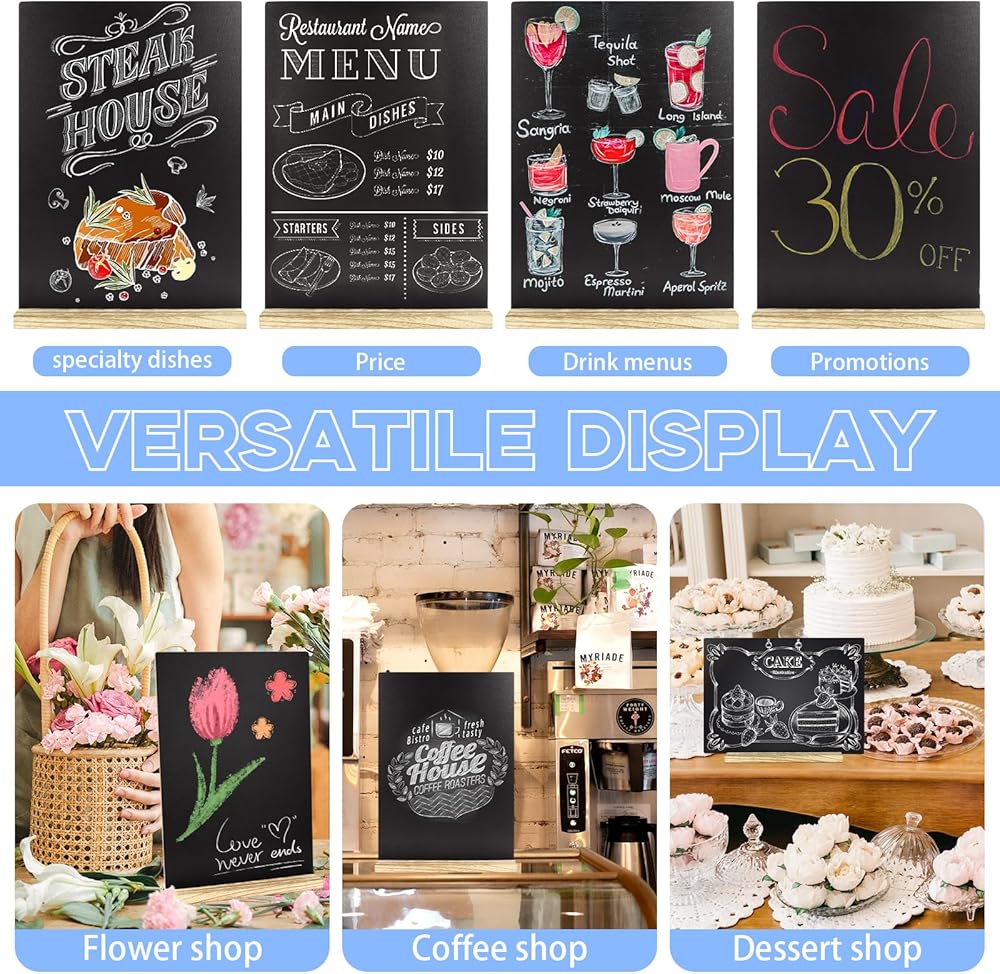 6 Pack Menu Chalkboard Signs: Our menu chalkboard signs include 6 pieces of 8 x 12 inch blackboard signs with wooden holders, providing enough quantity for your daily use in restaurants, coffee shops, pubs, catering, home parties and wedding banquet halls.